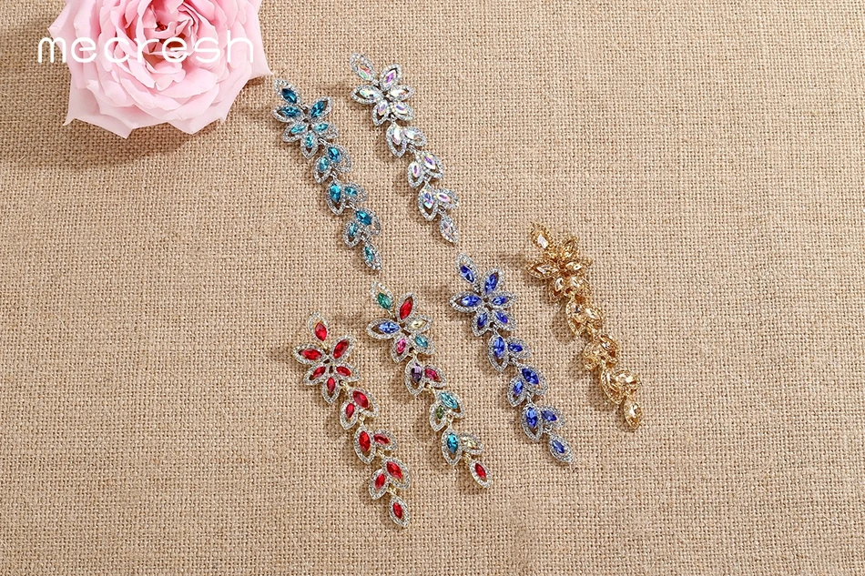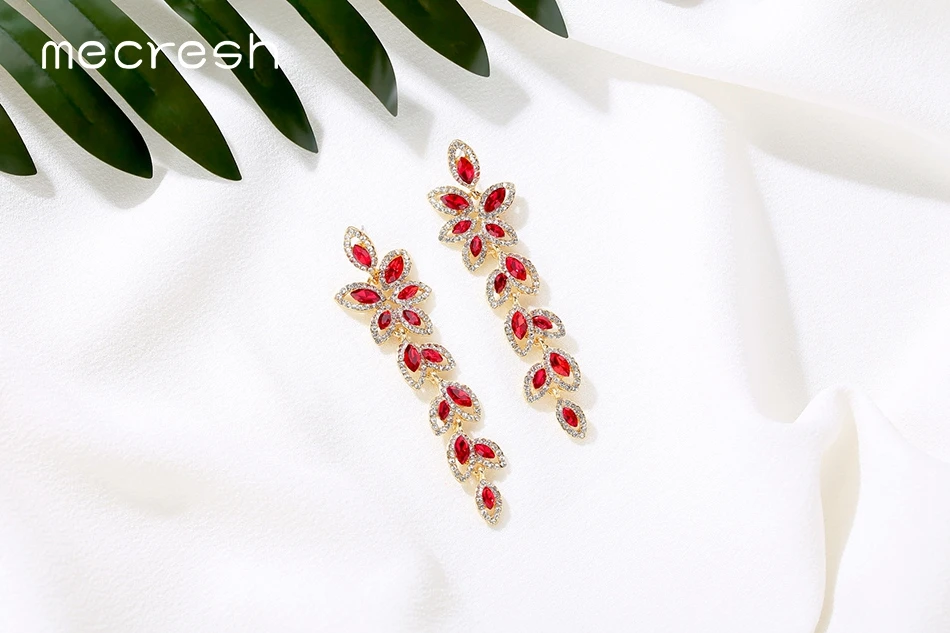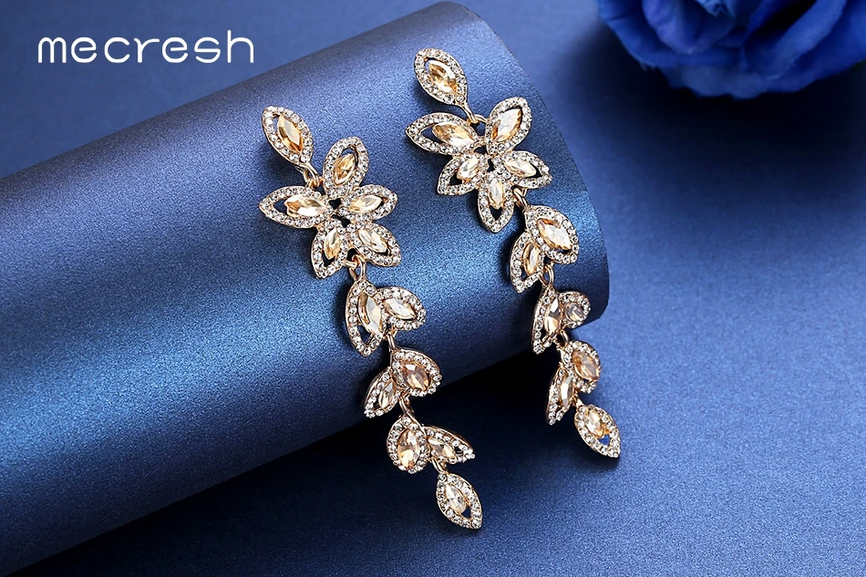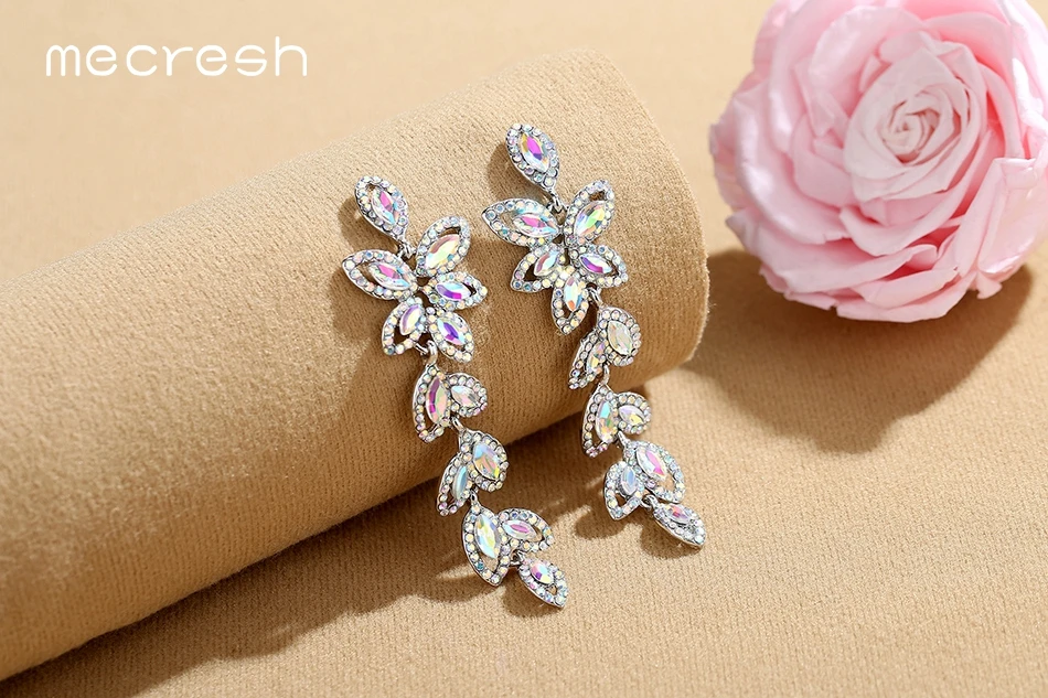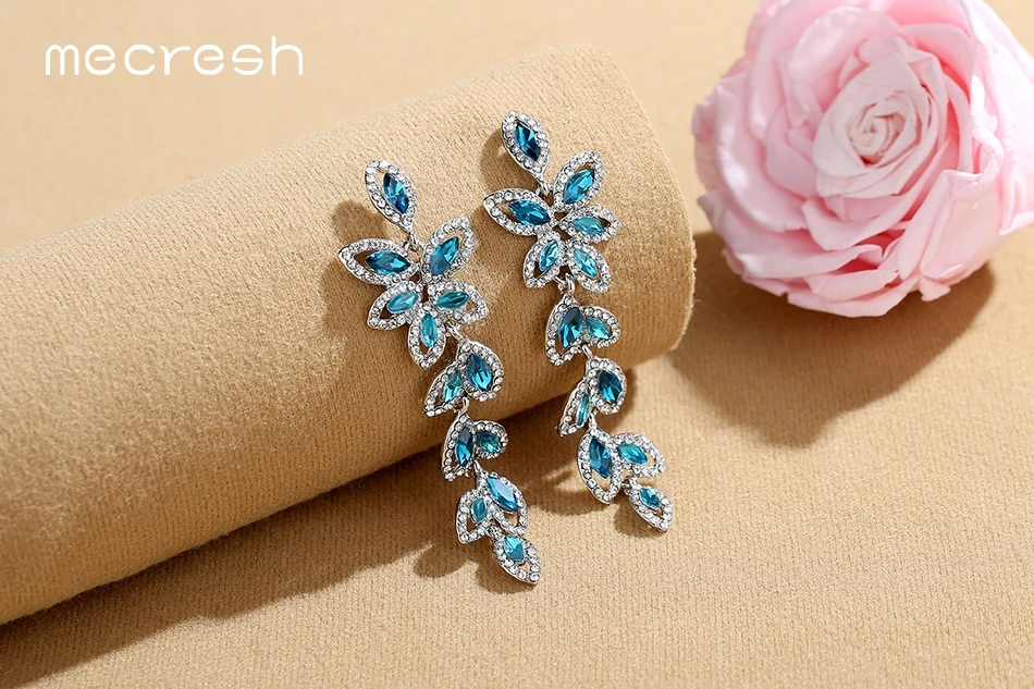 Mecresh свадебные длинные висячие серьги с кристаллами для женщин Серебряные серьги с листьями свадебные серьги ювелирные изделия для помолвки 2019 EH282