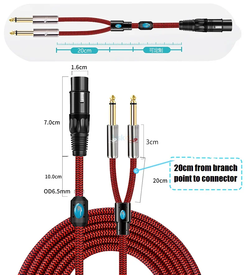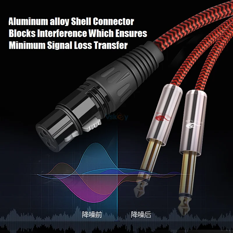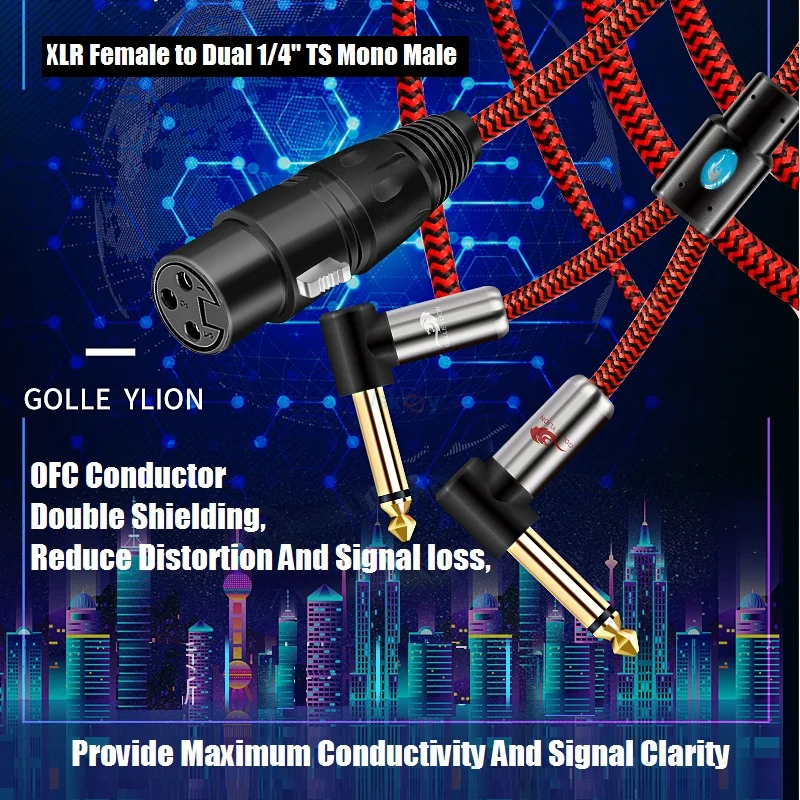 【XLR Female to Dual 1/4 TS моно-штекер Y сплиттер кабель 】 этот кабель позволит вам выводить из консоли миксера XLR штекер выходного разъема, И подключите к входам 1/4 "jack на отдельном устройстве, он разделяет моно сигнал XLR на две отдельные моно 1/4 линии.