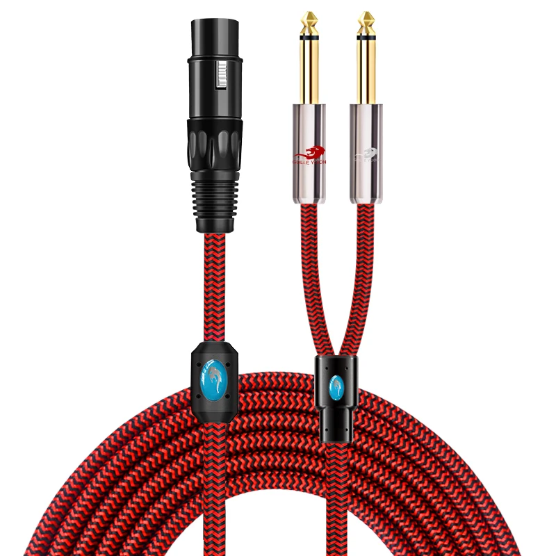 XLR Женский двойной 14 ''TS моно-штекер 6,35 мм штекер аудио кабель для микрофона усилитель микшерный пульт Y сплиттер экранированный шнуры