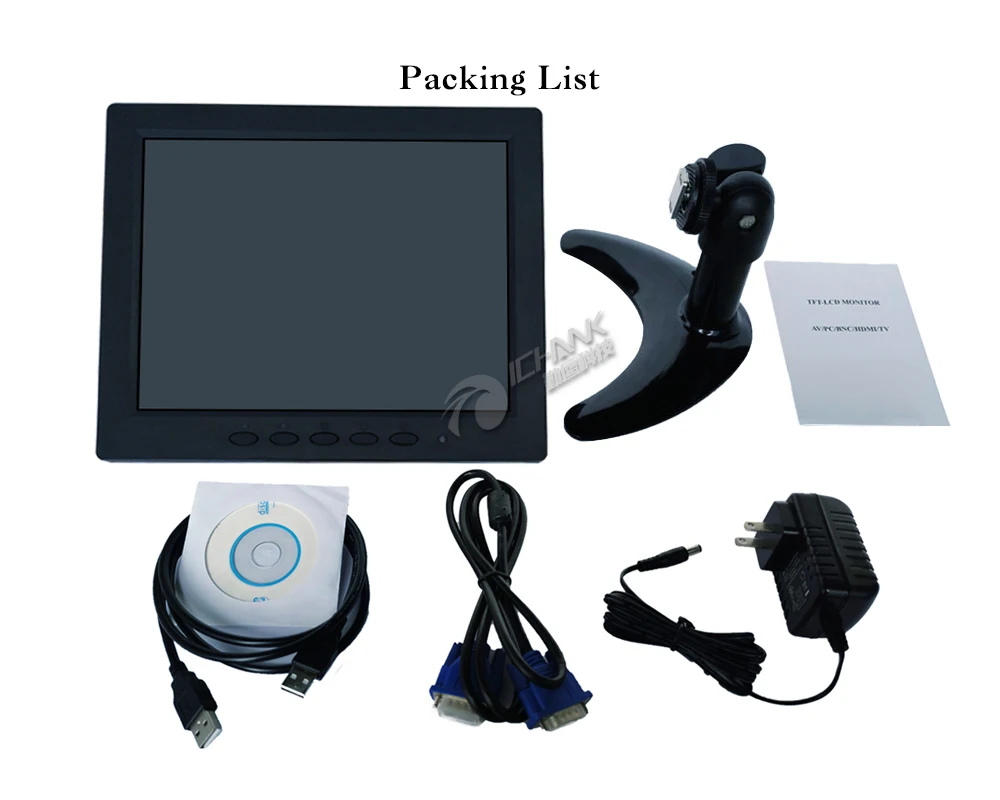 Монитор * 1/адаптер питания * 1/основание * 1/USB кабель * 1/VGA кабель * 1/сенсорный драйвер CD * 1/общее руководство (только для справки, доступно для нескольких моделей, поэтому его содержимое может не совпадать с моделью, которую вы покупаете сейчас);