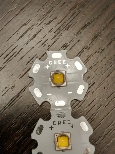 светодиоды были получены успешно. сравнивая вес данных светодиодов с родными светодиодами из фонаря, можно сказать, что данные светодиоды тяжелее и в тоже теплоотвод лучше. светят очень ярко и соответствуют заявленным характеристикам.