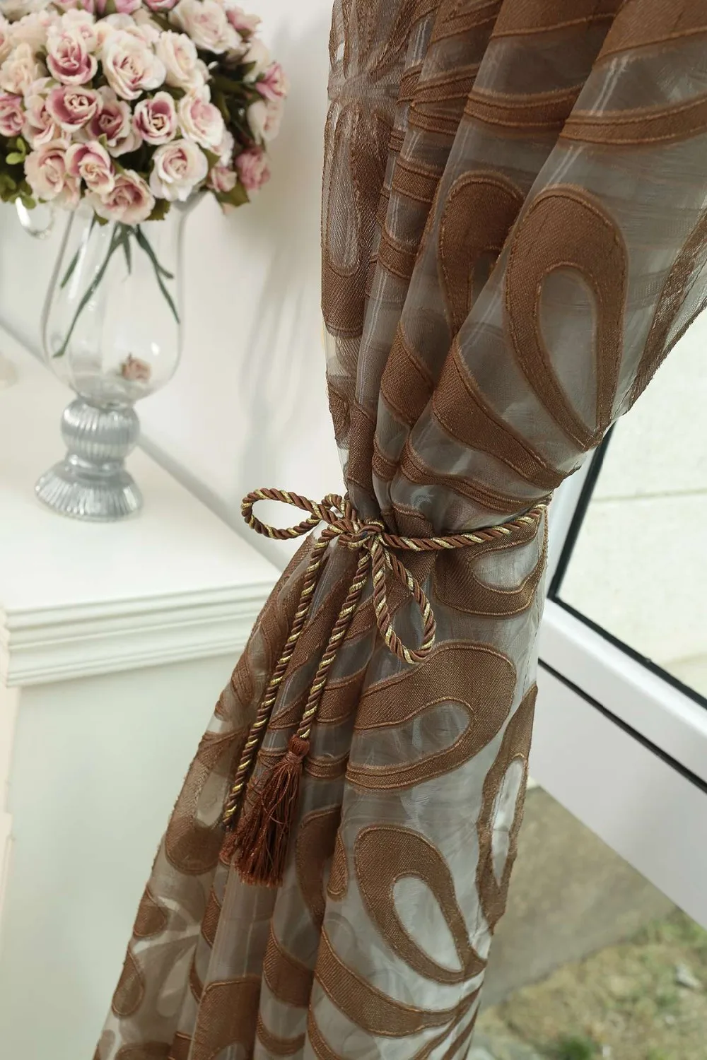 Шторы все еще в упаковке. Они выглядят мило. Очень красивый цвет. Мы надеемся, что они будут хорошо выглядеть после установки. См. Фото из магазина Napearl. Я оставлю больше отзывов и фотографий, как только занавески появятся.