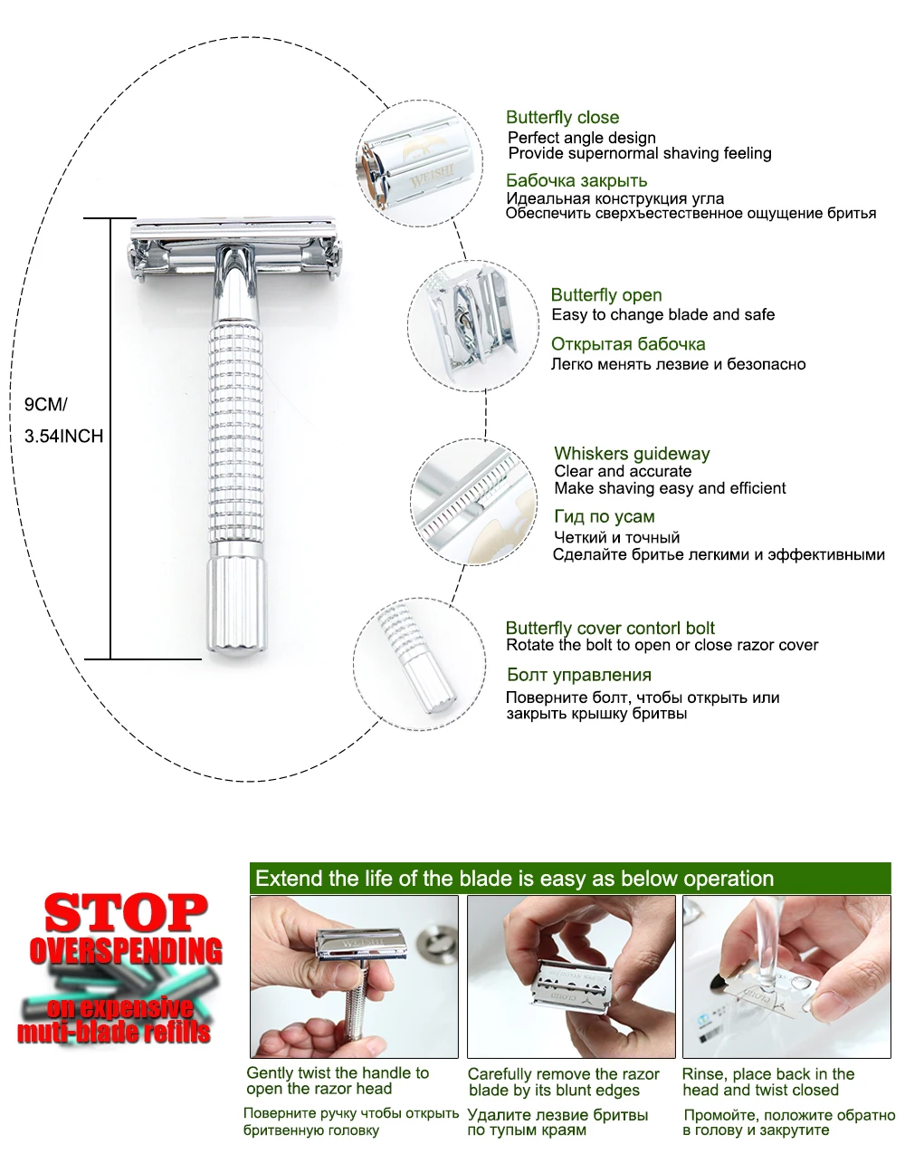 После месяца тестирования классического бритья с пантеоном Qshave 2 было очень трудно чистить, и он всегда оставляет мыло под лезвием и бритвой, которая должна быть очищена, затем удаляет лезвие за спиной побриться. Я решили затем купить Weishi 9306, потому что кажется, что, по крайней мере, проблема очистки может быть лучше, кроме того, если вы не волнуетесь о регулировке головки, что для тех, кто начинает, вы никогда не знаете, что положить. При первом бритье и, конечно, неплохое ощущение, на голове может быть лишний вес, хотя ручка достаточно тяжелая, чтобы дать, но набор. Я попробовал его с некоторыми qshaven лезвиями, которые по маленькому я пробовал довольно плохо, они не режут и не застревают, так что это было довольно испытание огня. Опыт, тем не менее, не был плохим, и я чувствую себя более комфортно, чем с Qshave, но, конечно, особенно для предмета положить его под кран и иметь его чистым в одно мгновение. Конечно, хорошая покупка.
