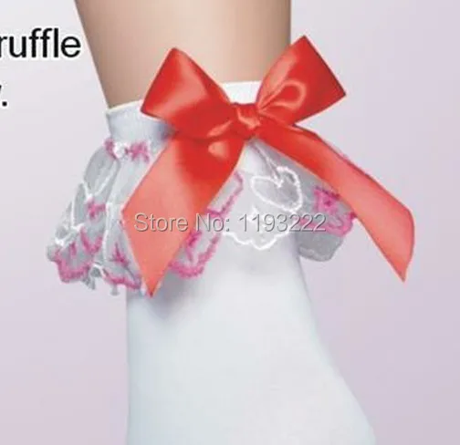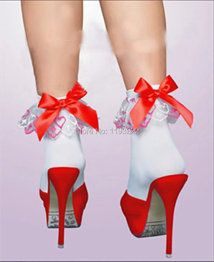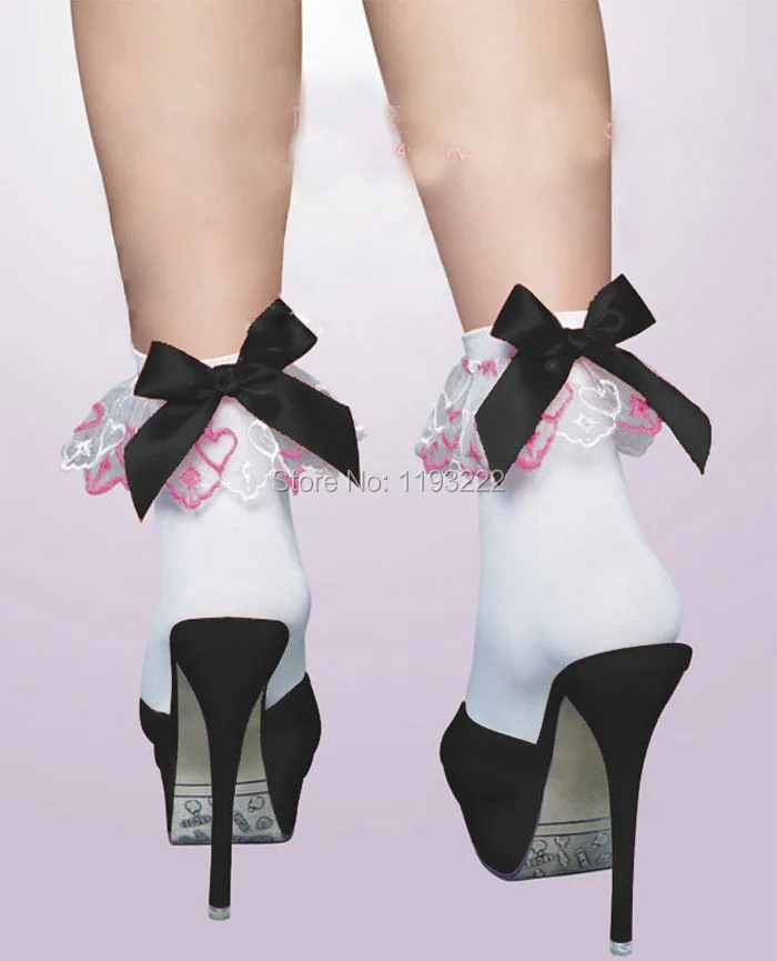 Лолита Kawaii косплей для девочек вышитые сердца гофрированные ножные браслеты с атласным бантом кружевные прозрачные короткие носочки