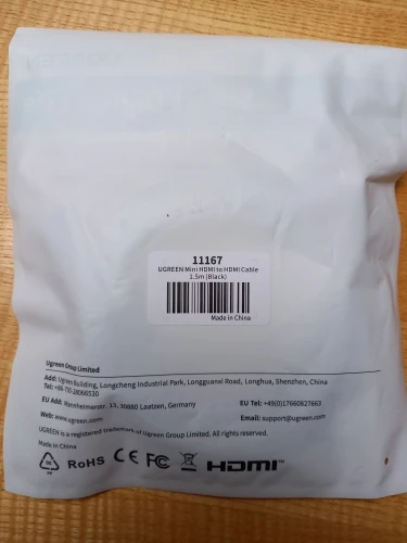 Страна: RU Color: Mini HDMI to HDMI Length: 1.5m Доставка: Standard Shipping 27.11.2020