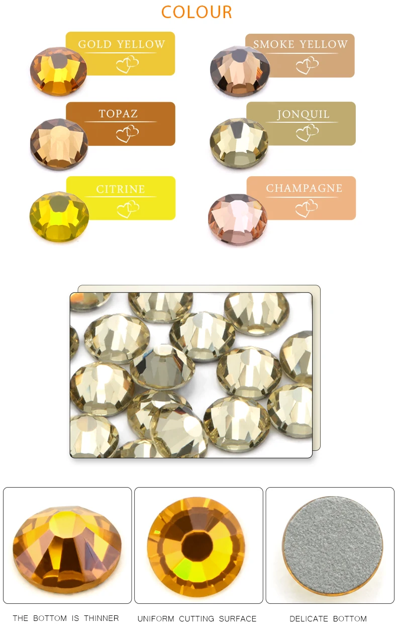 SS4-SS34 цитрин Стразы для дизайна ногтей плоский клей без горячей ...