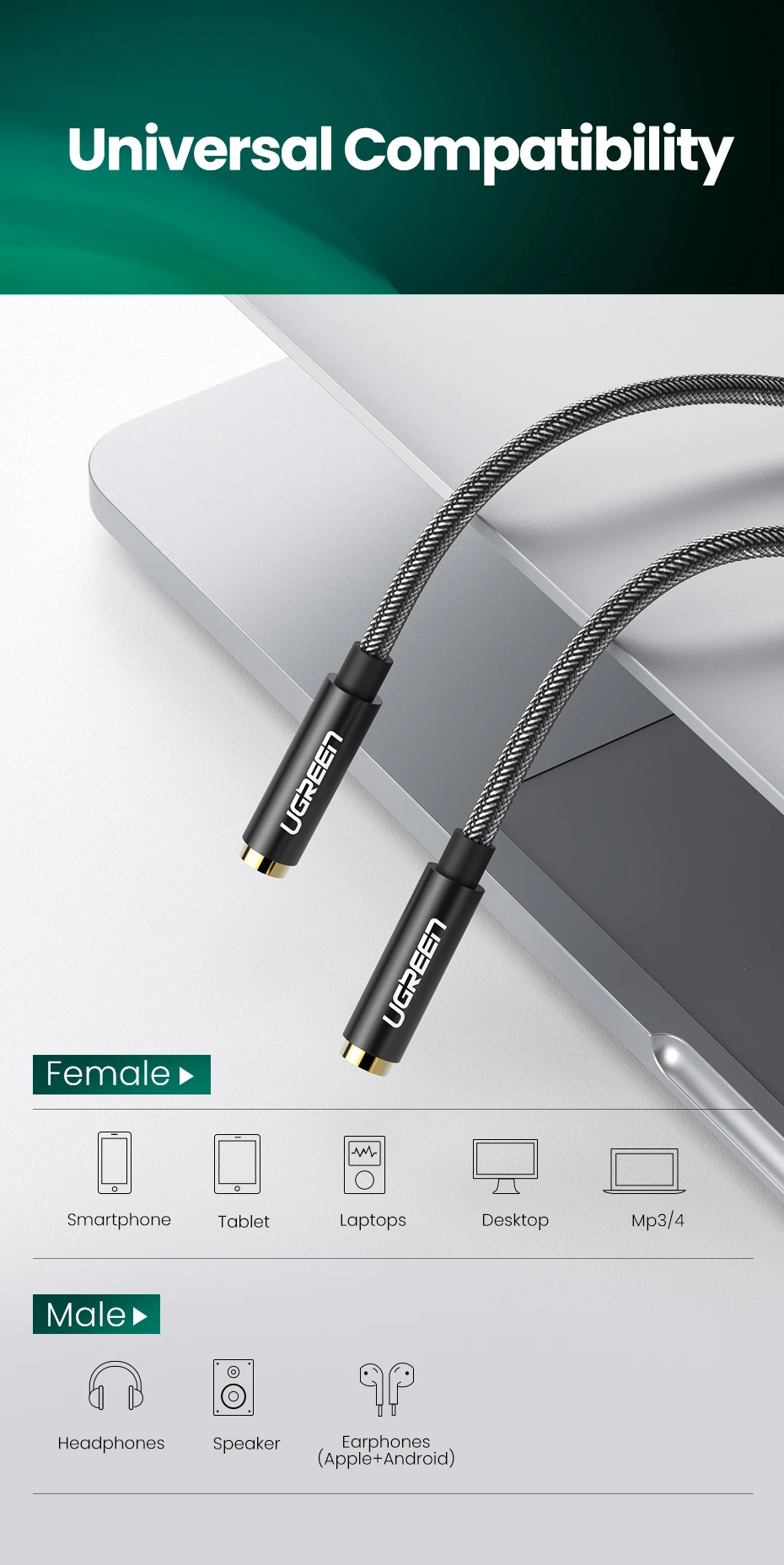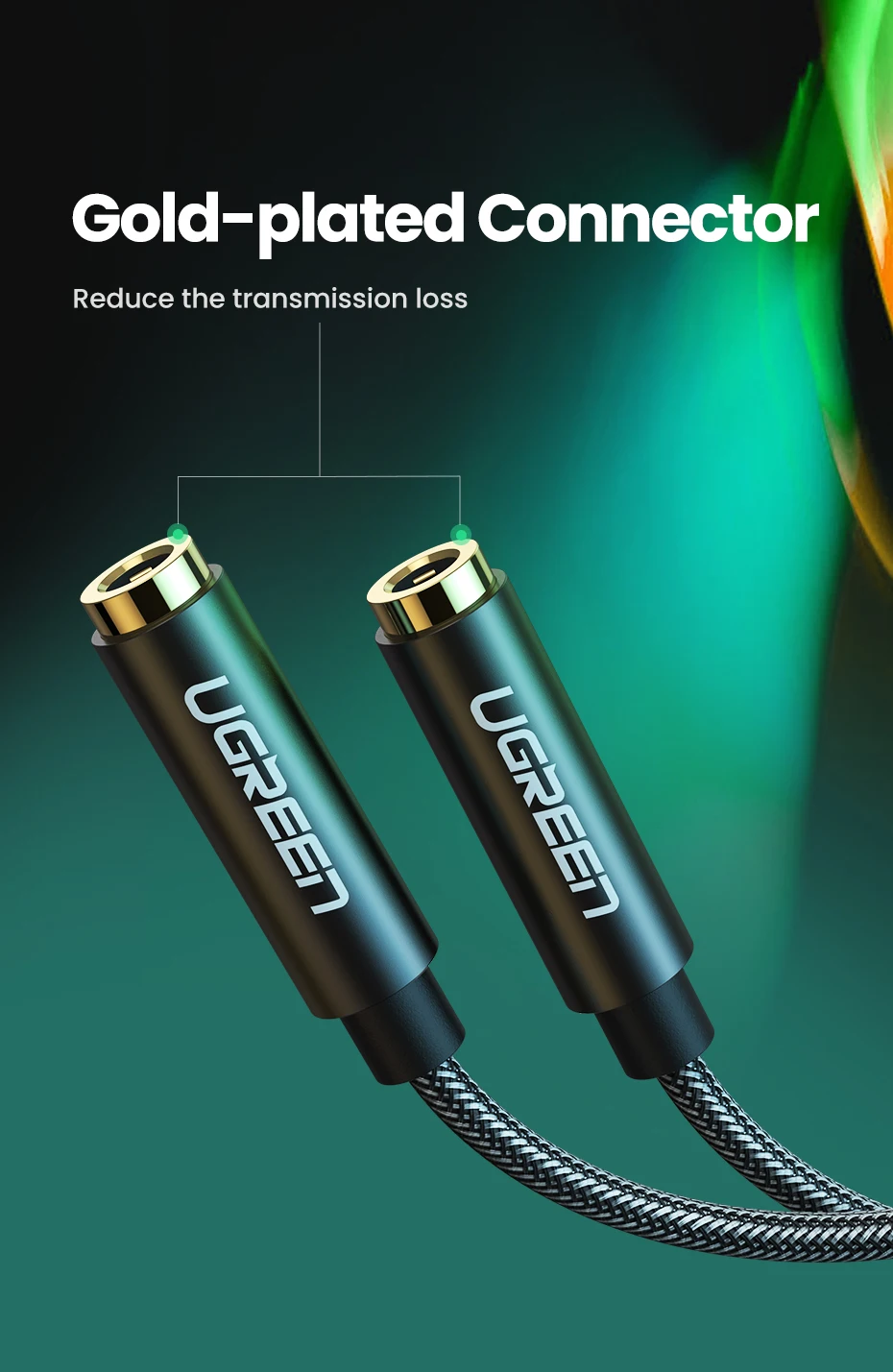Аудиокабель-разветвитель Ugreen 3,5 мм штекер2 гнезда 3,5 мм для наушников, переходник Aux, кабель для iPhone, Samsung, MP3-плееров