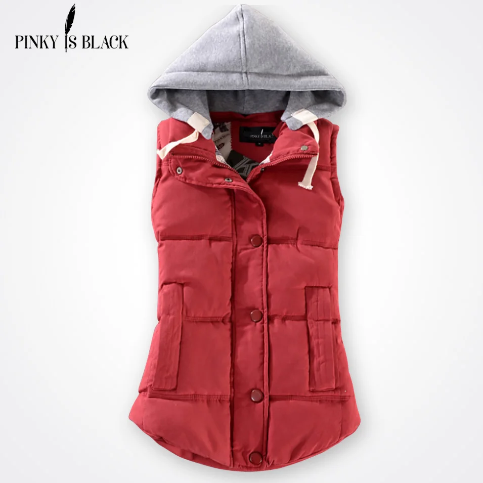 Женский хлопковый жилет Pinky Is, Черный Повседневный жилет без рукавов с капюшоном и воротником, Осень-зима