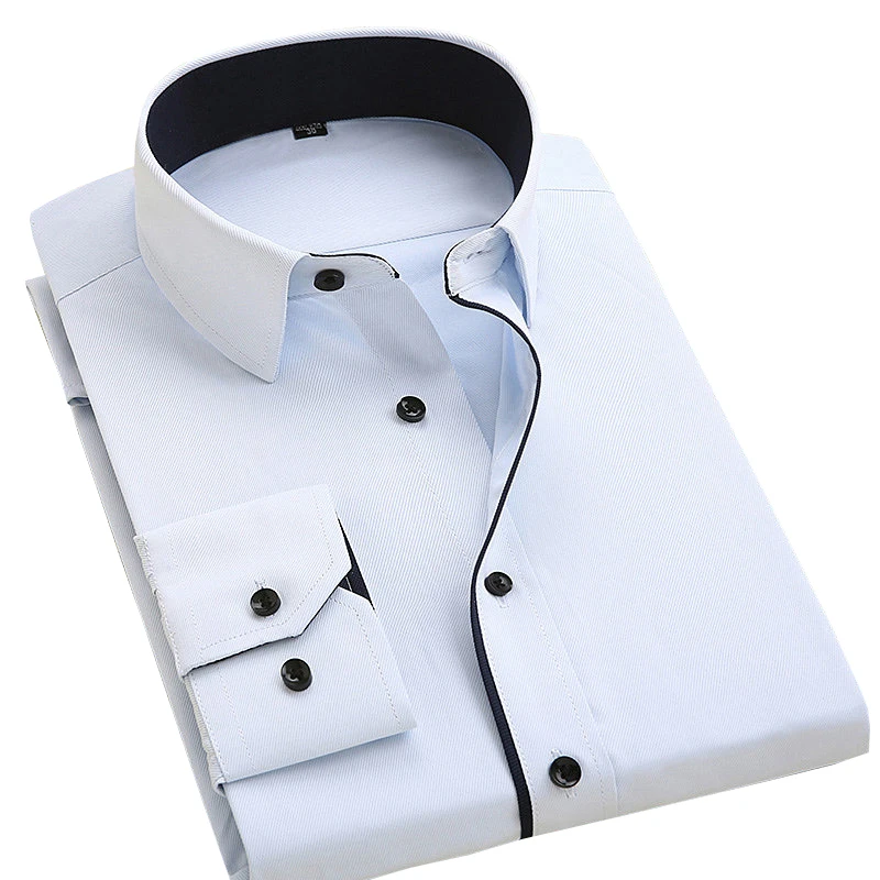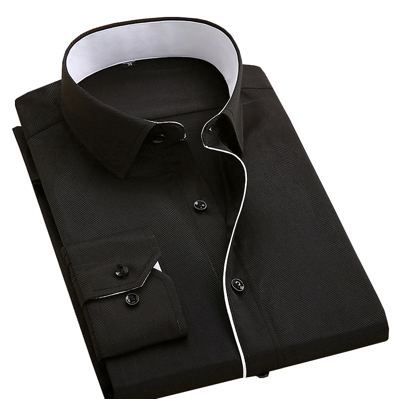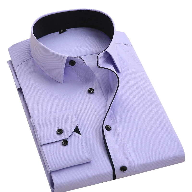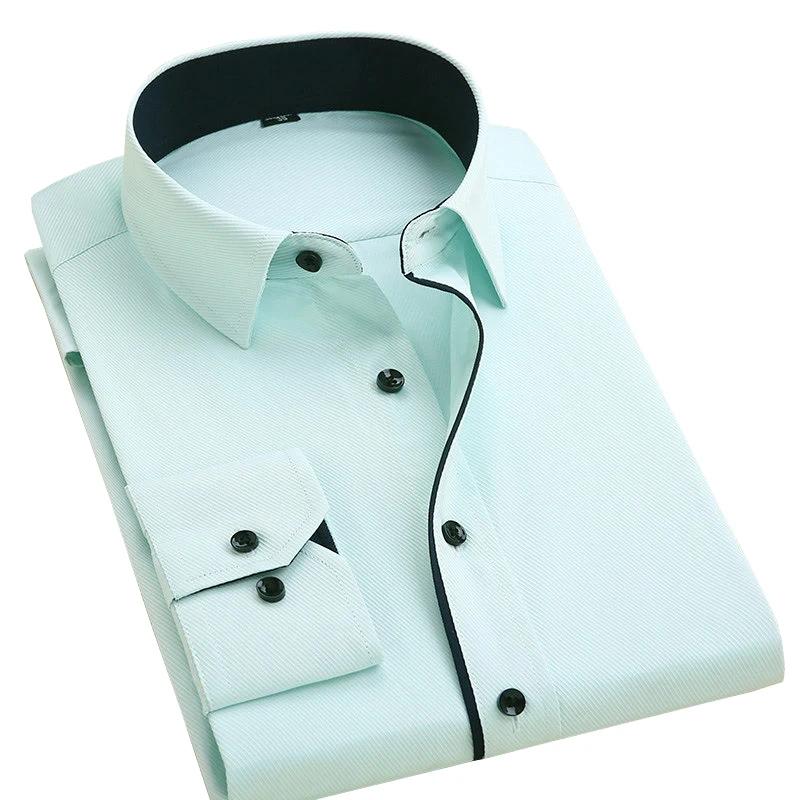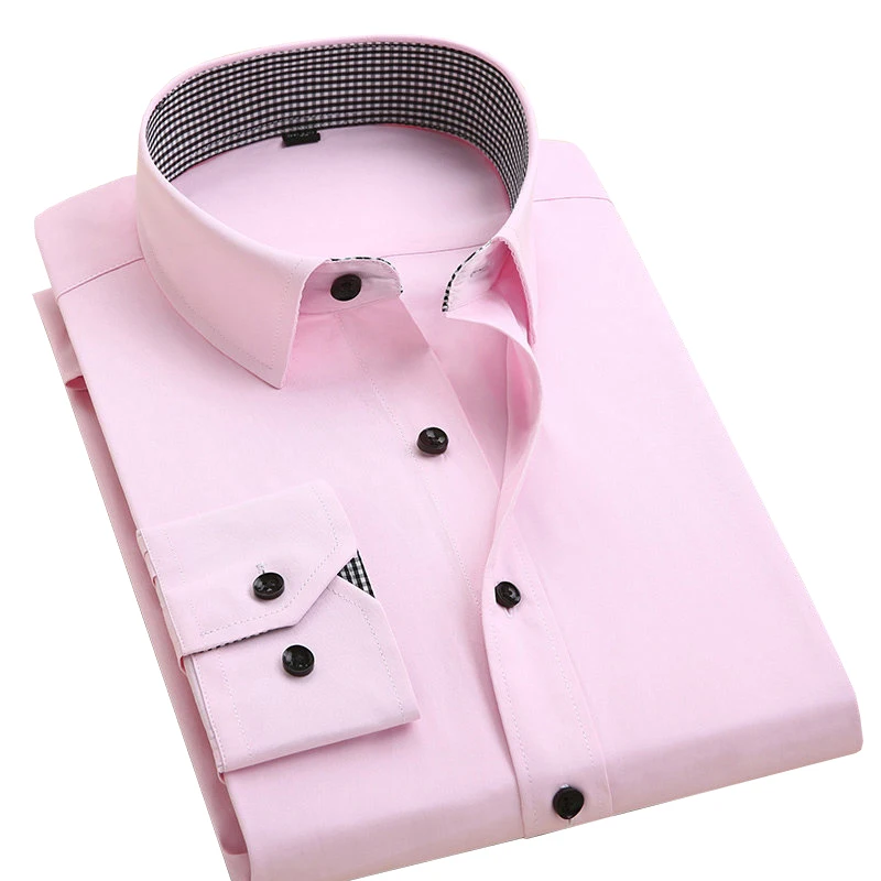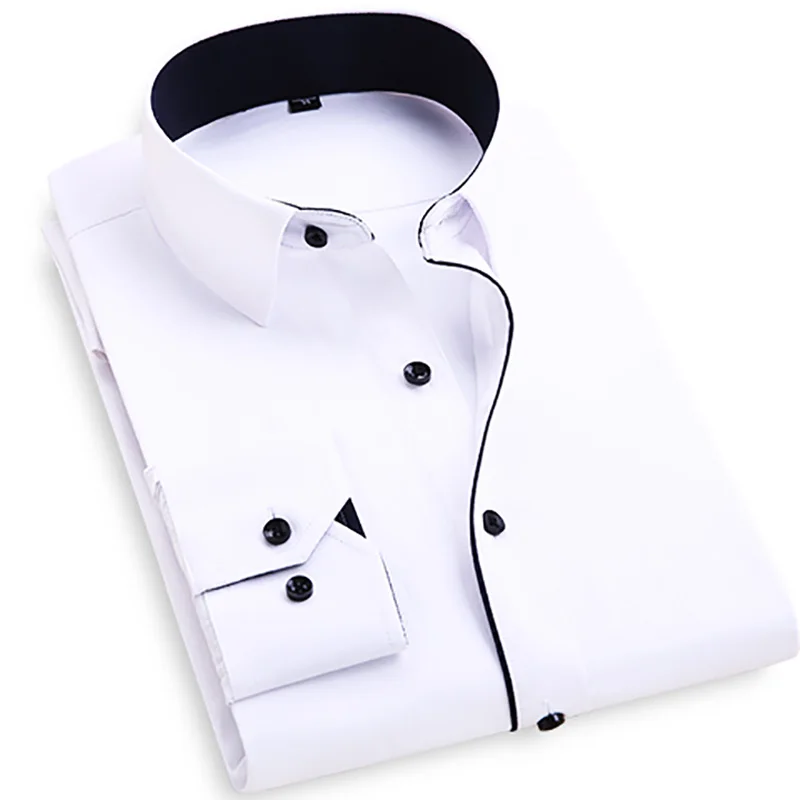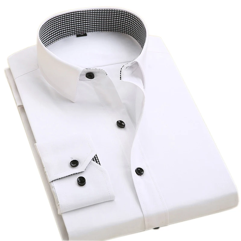Новинка Для мужчин S отложным воротником Пух воротник Формальные Рубашки для мальчиков Для мужчин с длинным рукавом Slim Fit Повседневная рубашка Для мужчин S одноцветное Цвет Платье в клетку Рубашки для мальчиков