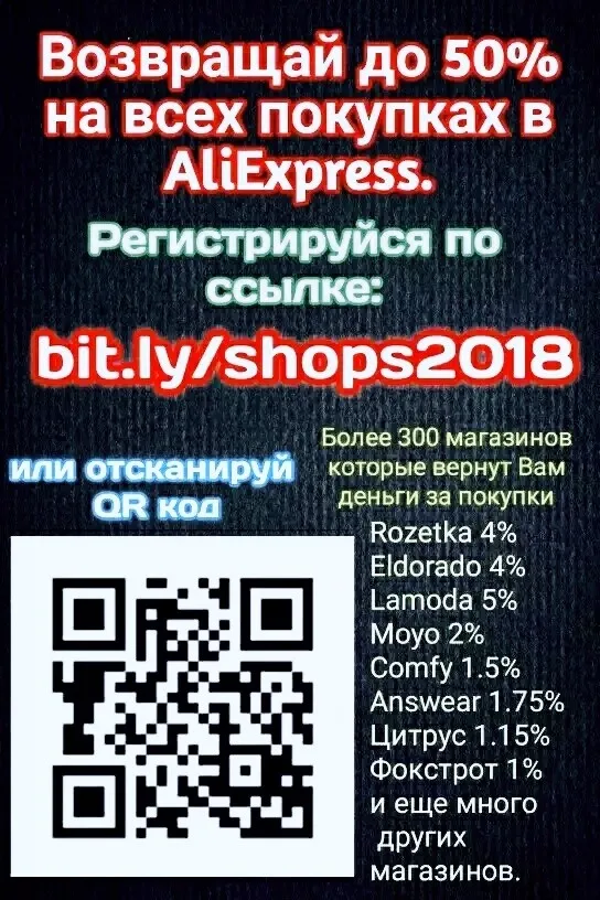 Рекомендую возвращать часть потраченых денег с покупок. Сделай первую покупку в любом магазине на сумму 200 грн. 535 руб. или 7.3 $ и получи на счет 50 грн. 134 руб. или 1.9$ Вся информация на фото или по ссылке: bit*ly/shops2018 (место звездочки поставь точку)