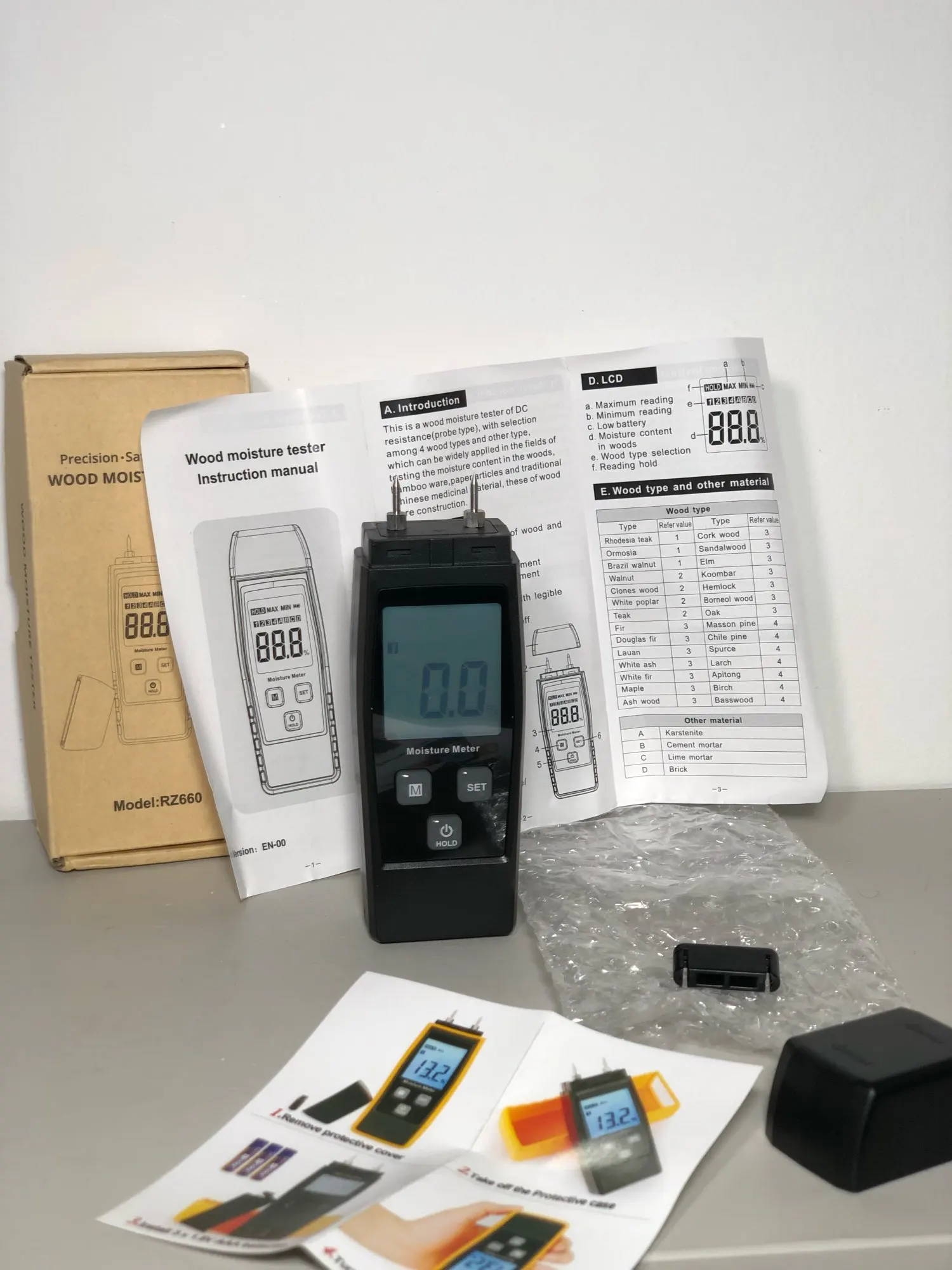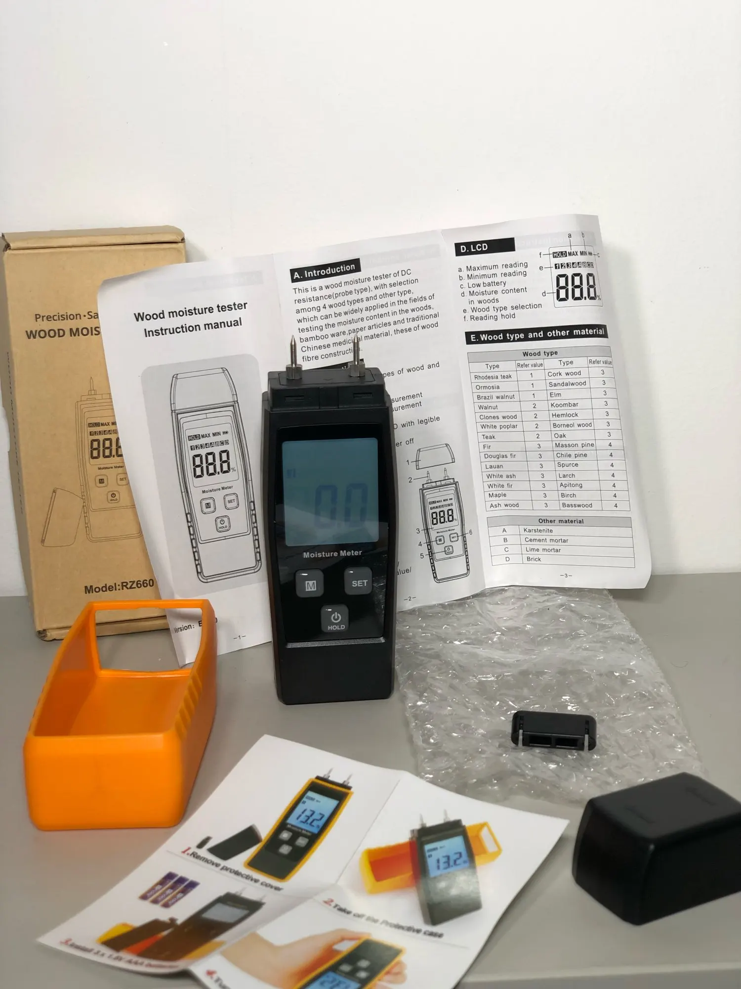 Измеритель влажности RZ, цифровой измеритель влажности древесины, 0-80%, тестер для обработки древесины, измерительный инструмент RZ660