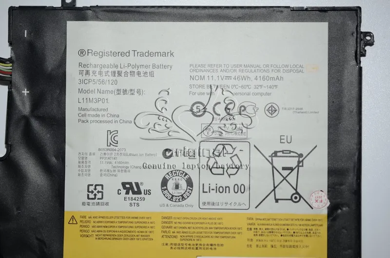 Оригинальный аккумулятор JIGU 3ICP556120 L11M3P01 для ноутбука Lenovo IdeaPad U310 11,1 В 46WH