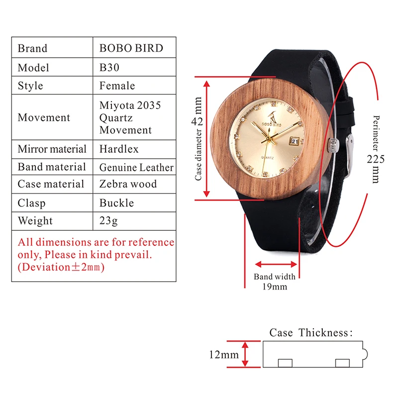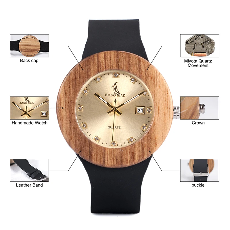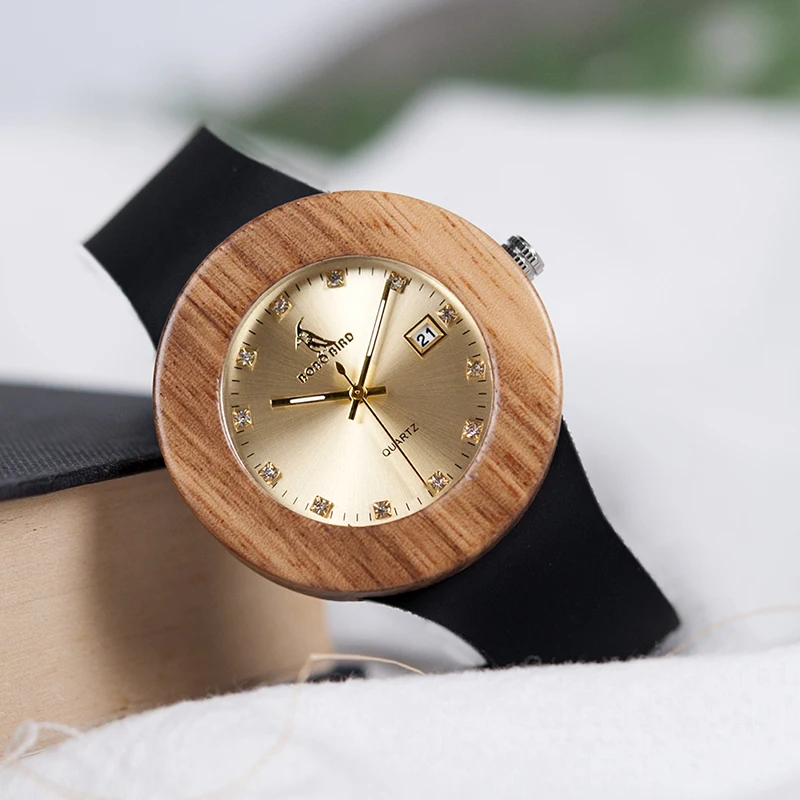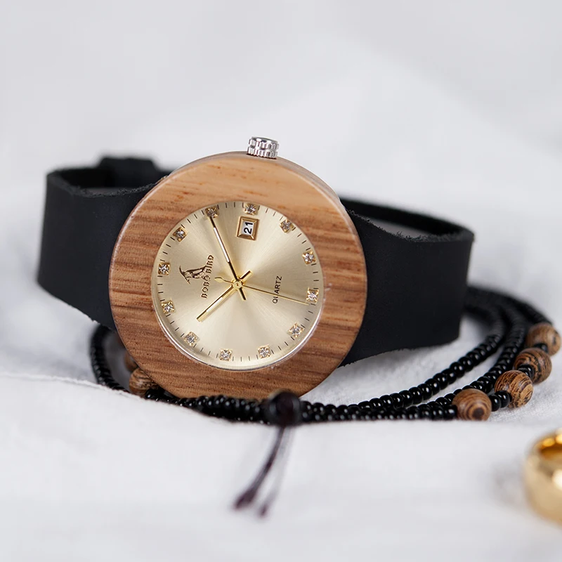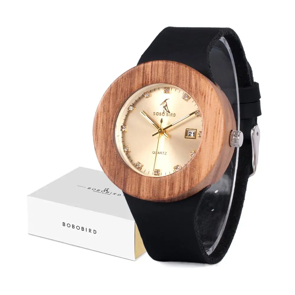 Часы наручные женские BOBO BIRD, кварцевые с календарем, с деревянным ремешком, под заказ