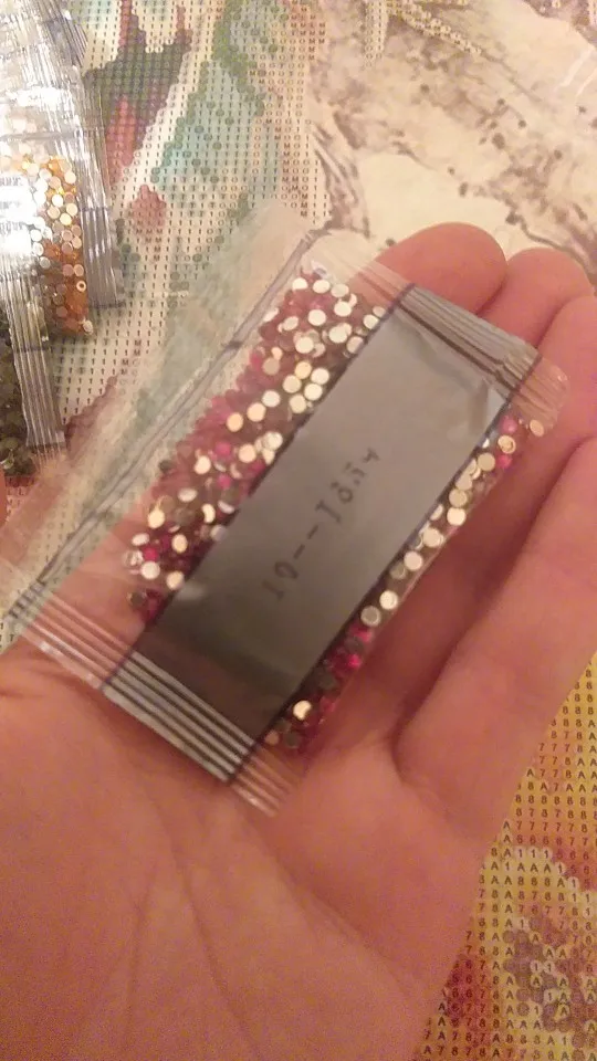 заказ прибыл вовремя. Холст в порядке, стразы в комплекте, в шуршалках. между первым и вторым номерами страз перегородка была только до половины, в результате серебристые и розовые стразы перемешались. надеюсь мне удастся их разобрать. спасибо