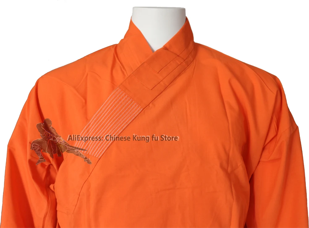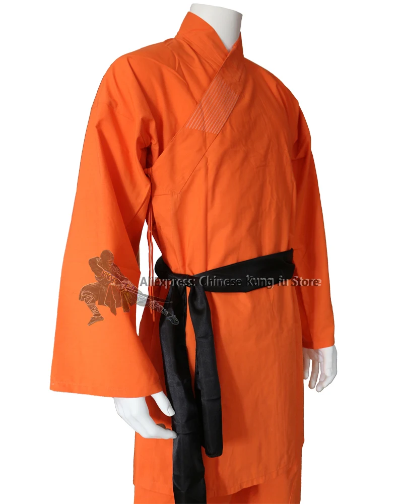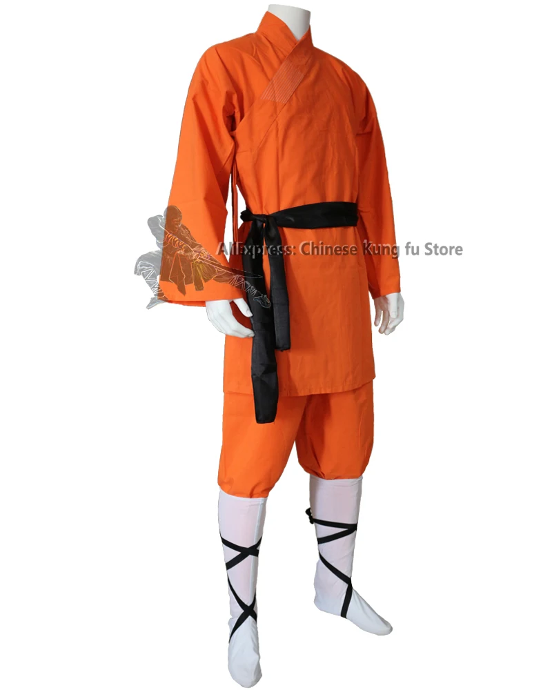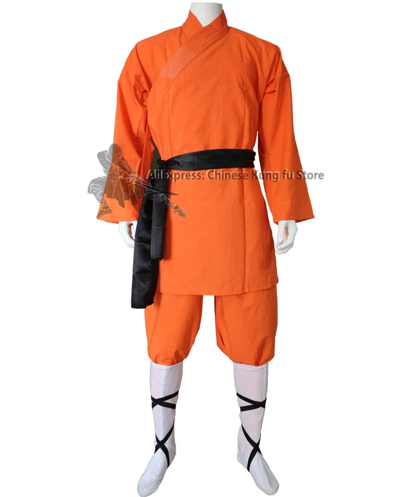 Детский оранжевый хлопковый костюм шаолиновых монах для взрослых, халат кунг-фу, костюм для боевых действий, униформа тай-чи Вин Чун