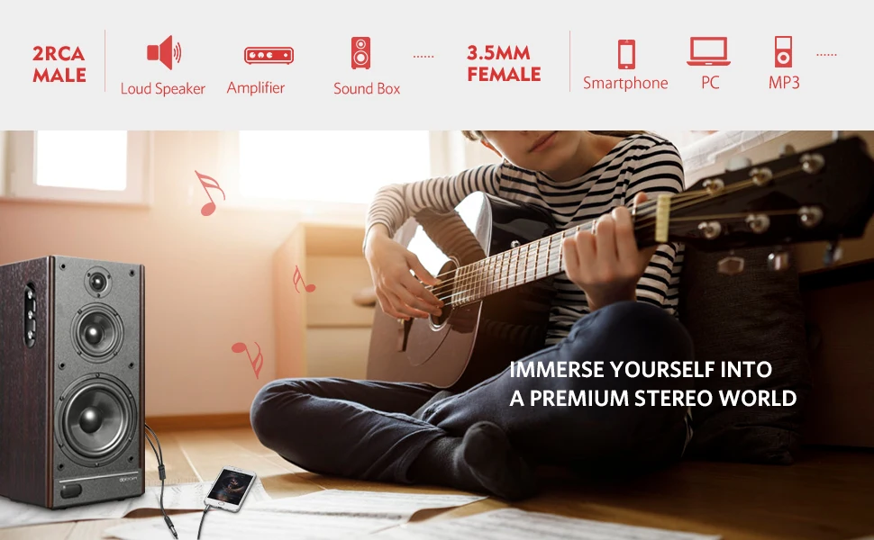 Этот разъем 3,5 мм с разъемом 2 RCA «Папа-мама» работает довольно хорошо. Профессионально улучшает мой футбол.