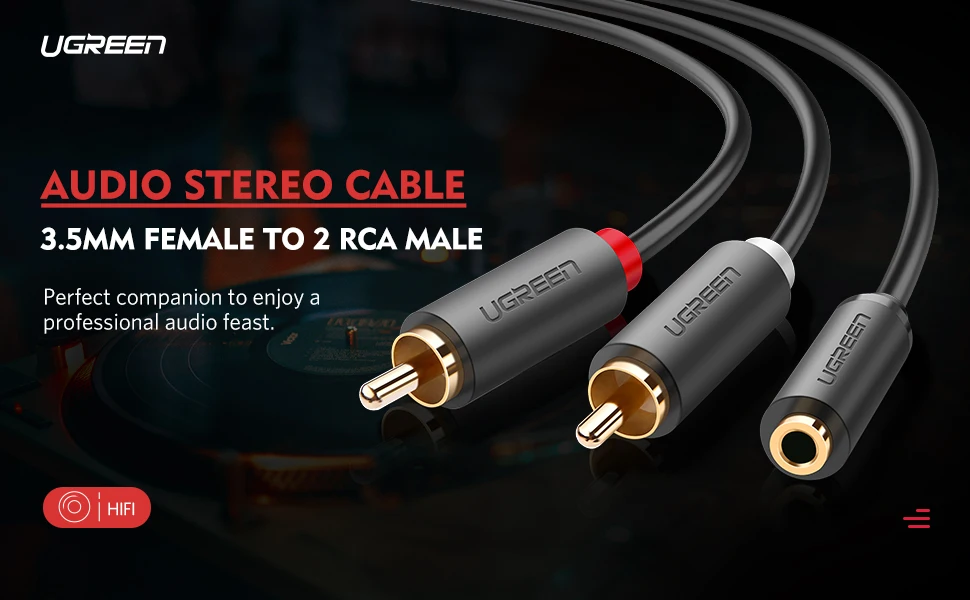 Кабель RCA UGREEN, 2 штекера RCA на гнездо 3,5 мм, аудиокабель, Aux кабель для iPhone, домашнего кинотеатра, DVD, VCD наушников