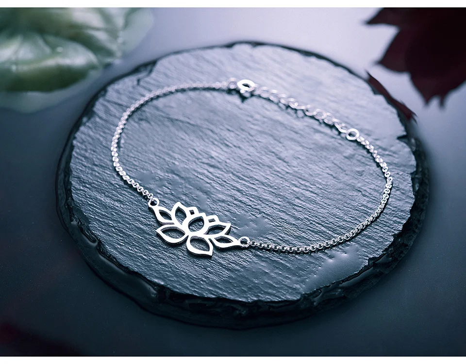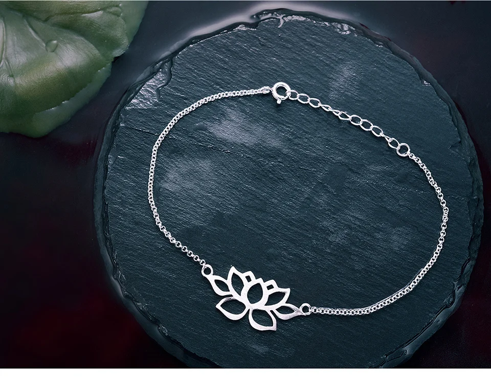 новый лучший качество серебро 925 ручная работа очень нежный и свежий выдалбливают Лотос Дизайн браслет женщины мода аксессуары скидки подарки