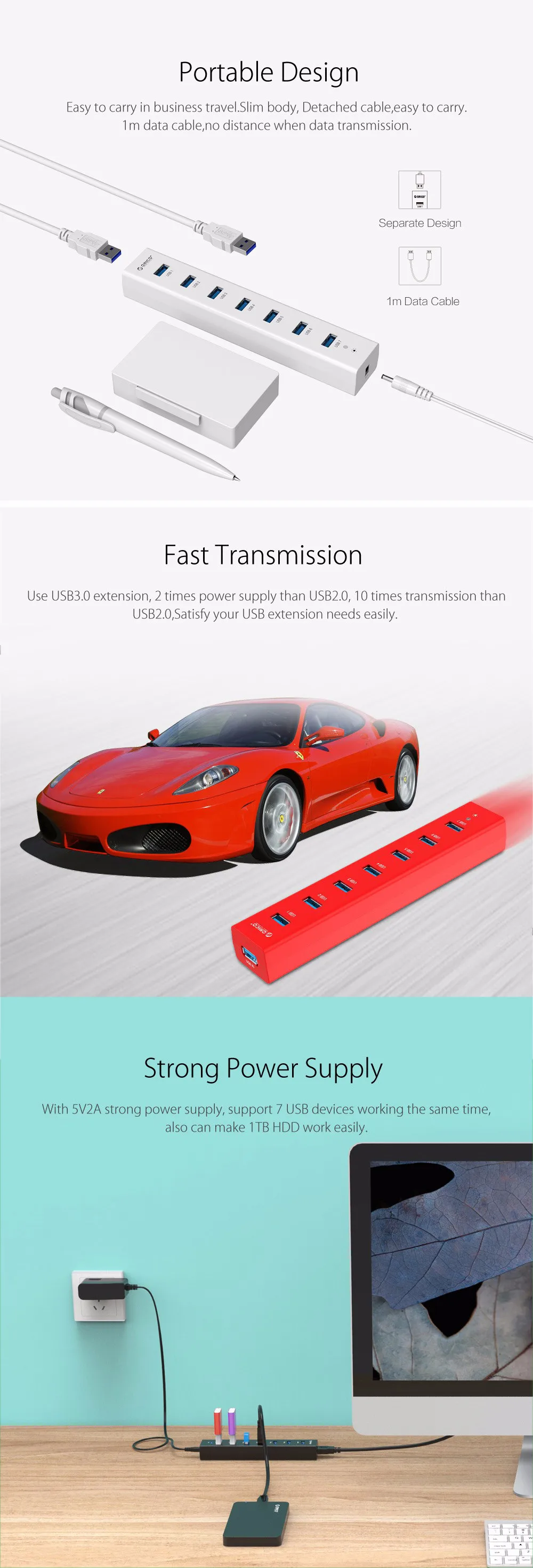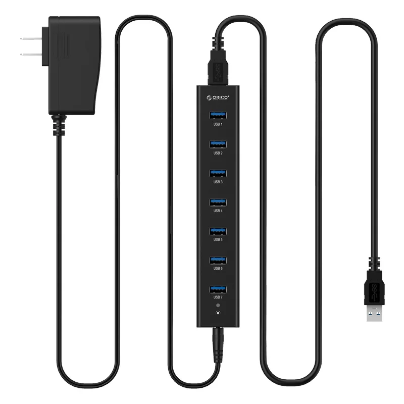 ORICO H7013-U3-AD 7-портовый концентратор USB 3,0 с адаптером питания 5В 2A высокоскоростной-черный
