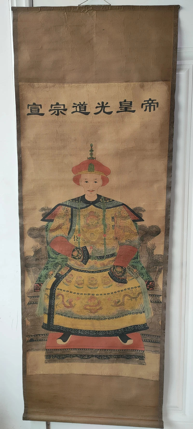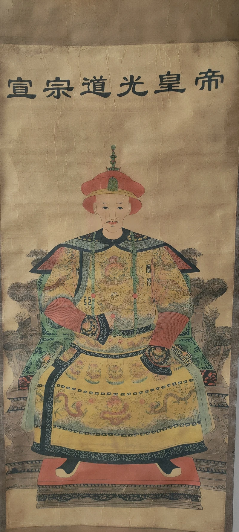 Проработанная китайская старая живопись свиток династии Цин винтажный античный портрет императора-Дао Гуан