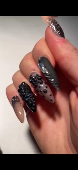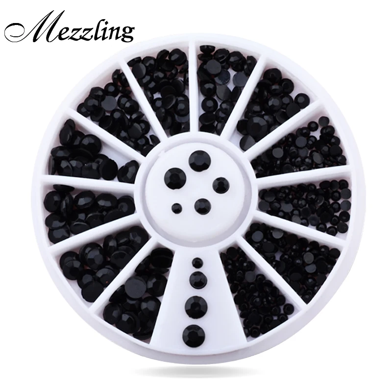 Наклейки для ногтей, 3 размера, черные 3d горный хрусталь жемчуг для ногтей