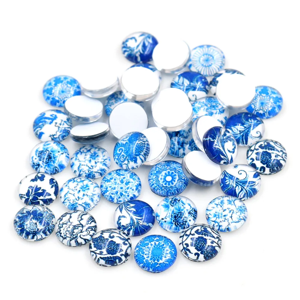 Горячая продажа 8 мм и 10 мм 12 мм 16 мм смешанный синий и белый фарфор ручной работы фото стеклянные кабошоны DIY ювелирных изделий