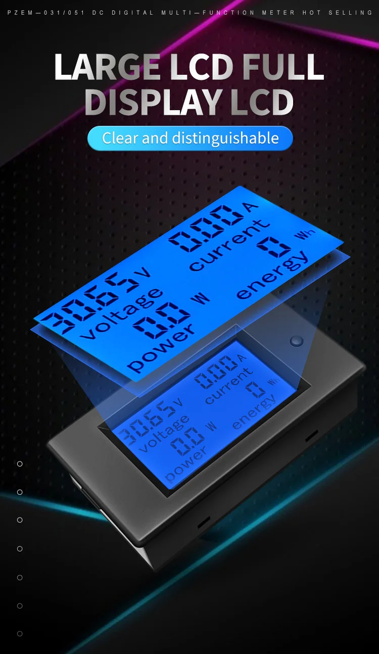5. Большой ЖК-экран (напряжение дисплея, ток, активная мощность, энергия одновременно)