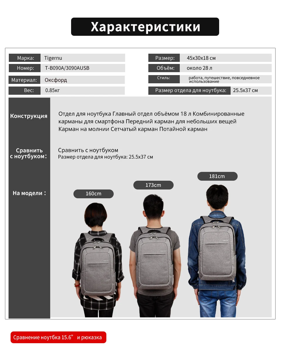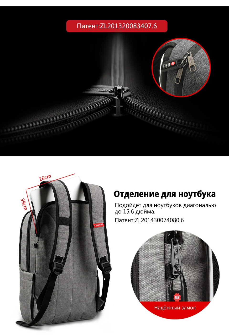 Рюкзак Tigernu Для мужчин рюкзак анти-вор, мужской рюкзак для ноутбука 14-15 дюймов Тетрадь компьютерный рюкзак сумки Для мужчин рюкзак школьный рюкзак