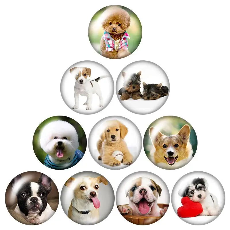 Платье с милой собачкой любимого питомца 18 мм кнопки 10 шт. круглые фото кабошоны разрисованные изделия из стекла стиль для кнопки ювелирные изделия