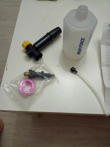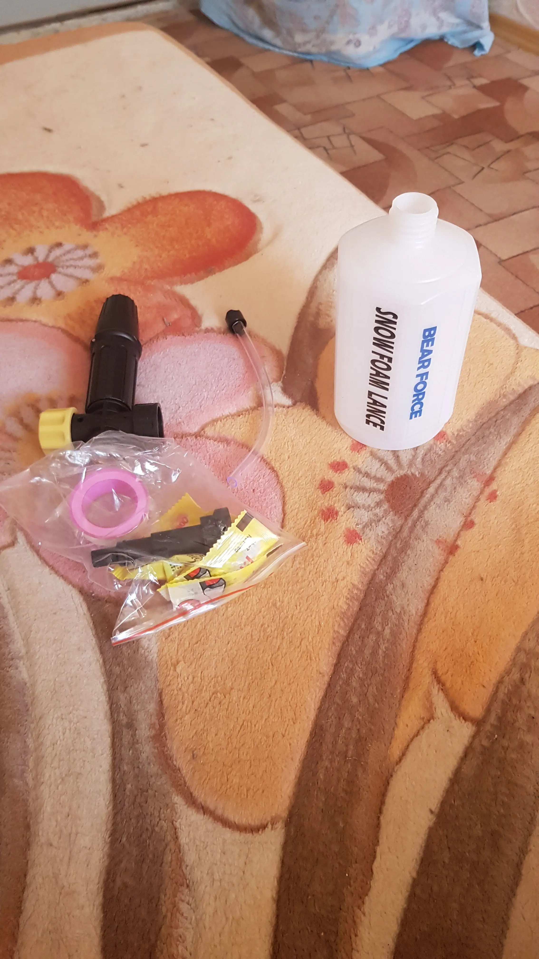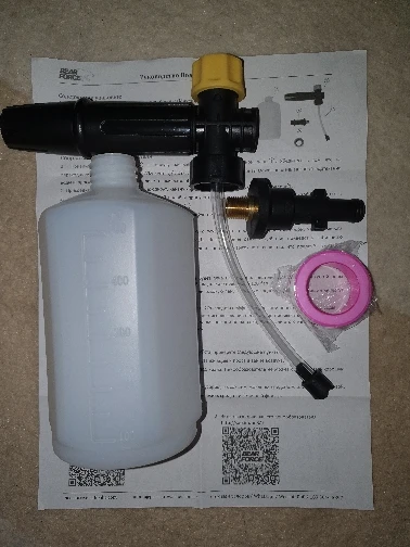 пеногенератор просто бомба. лучше чем многие модели керхера а стоит в 3-7 раз дешевле. пена такая густая что если налить в стакан там ложка стоит. рекомендую