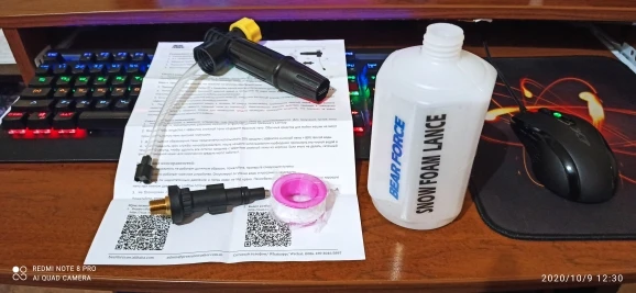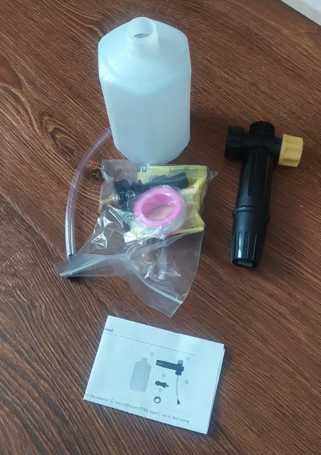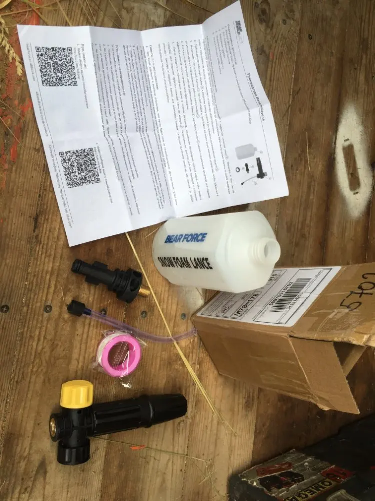 Итак, отзыв начну с общения с продавцом. Он оказался максимально крутым чуваком, спросил меня о всех возможных размерах штуцера моего стокового пенника (от мойки Huter w105p). И уверенно порекомендовал подходящий мне вариант Н. За что я ему жму пятюню. Доставка курьером около 2 недель (это нереально быстро). Компактная коробочка. Ну, и результат вы видите на фото ниже. Пенит эта штука, по сравнению, если их вообще можно сравнивать, с генератором из набора с мойкой реально круто. В общем, рекомендасьон!!