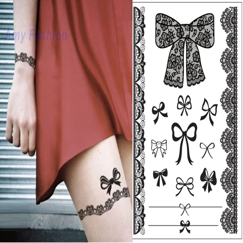 1 лист Водонепроницаемый черный бант украшение кружева тату панк тату стикер поддельные татуировки Рисование DIY временное боди-арт