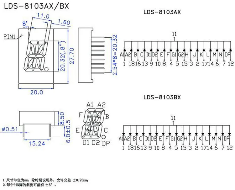 Светодиодный дисплей 10 шт., 16 сегментов, светодиодный дисплей красного цвета 0,8 "27,7x20 мм, общий анод, 1 цифра, светодиодный дисплей, 16 сегментов, 18 контактов
