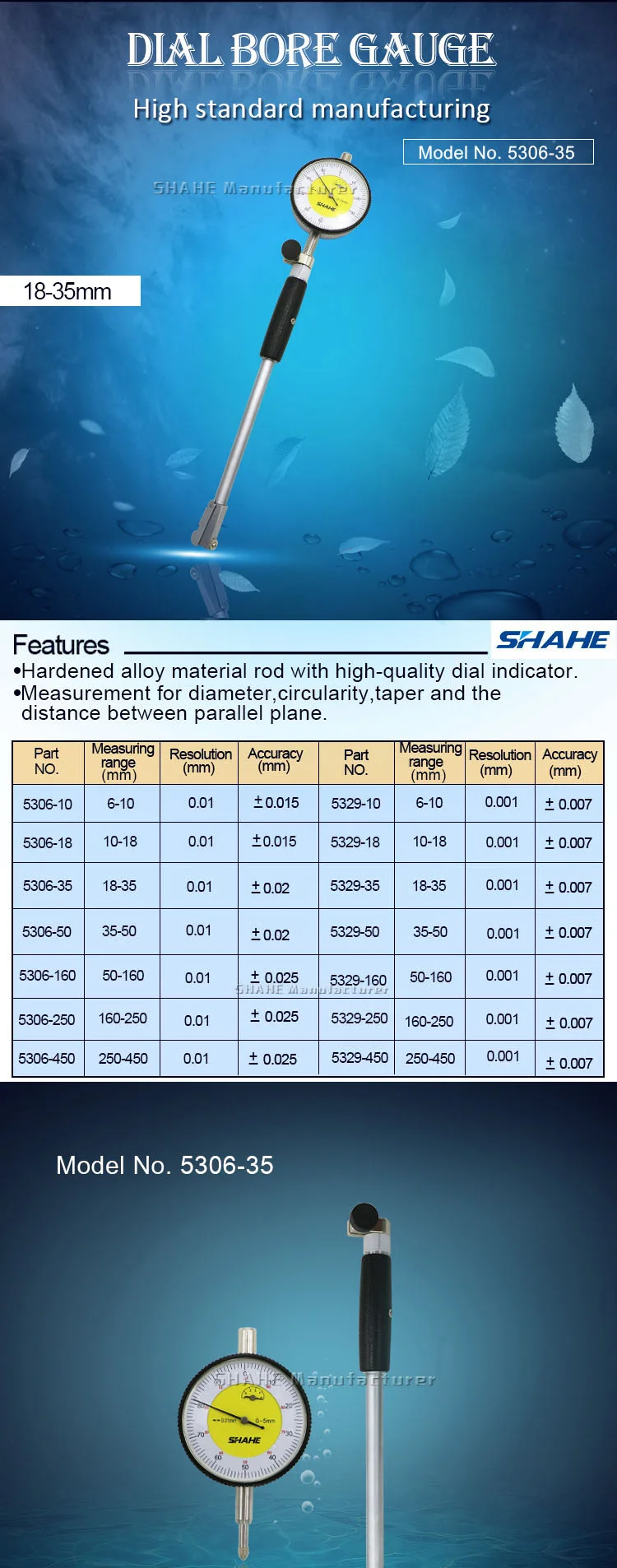 Высокоточный Измеритель отверстий SHAHE, 18-3535-5050-160 мм, 0,01 мм