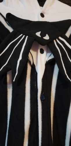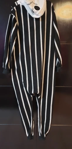 Я влюблен в эту пижаму! Этот красивый, он немного тонкий, он не прозрачный, я попросил XL, потому что в некоторых комментариях он сказал, что уменьшенный размер пришел, и я остаюсь очень хорошо, он пришел с странным запахом, но это не имеет значения, так как при стирке он был удален, Я очень рекомендую его, особенно для людей, которые любят мир Джека Elnextraño и, хотя продавец опоздал с отправкой, посылка прибыла очень быстро.