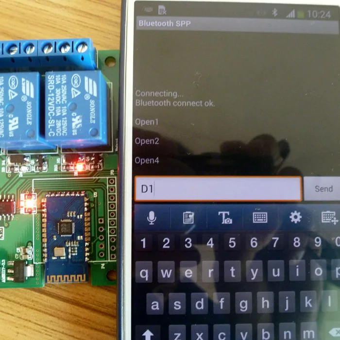 3: отправка команд через приложение Android Bluetooth, реле управления включено и выключено (мы предоставляем приложение Bluetooth, вы также можете использовать свое собственное приложение для управления реле, отправки команд для управления)