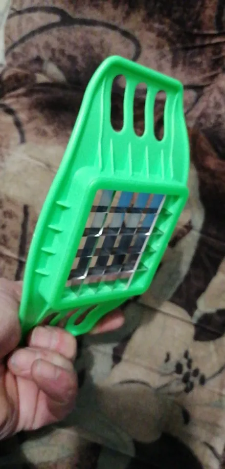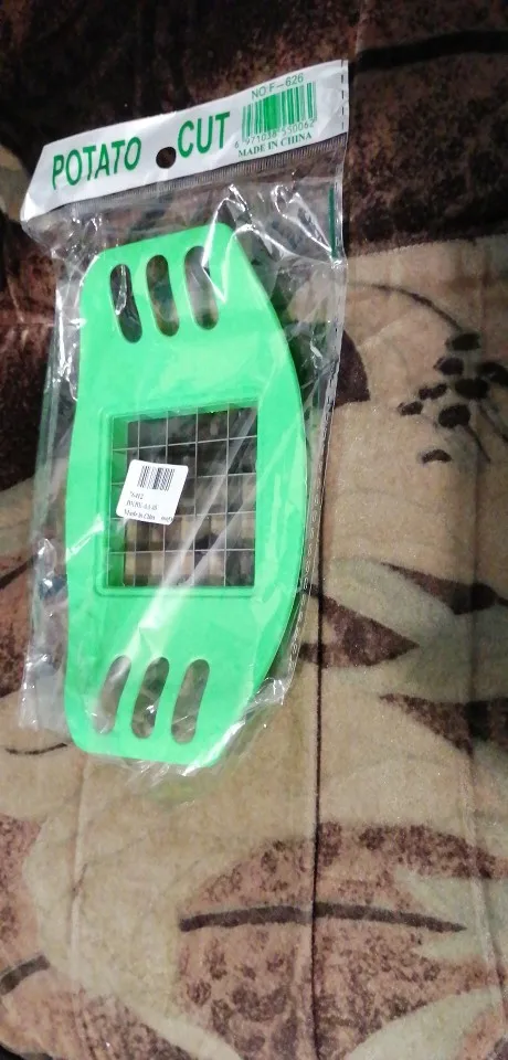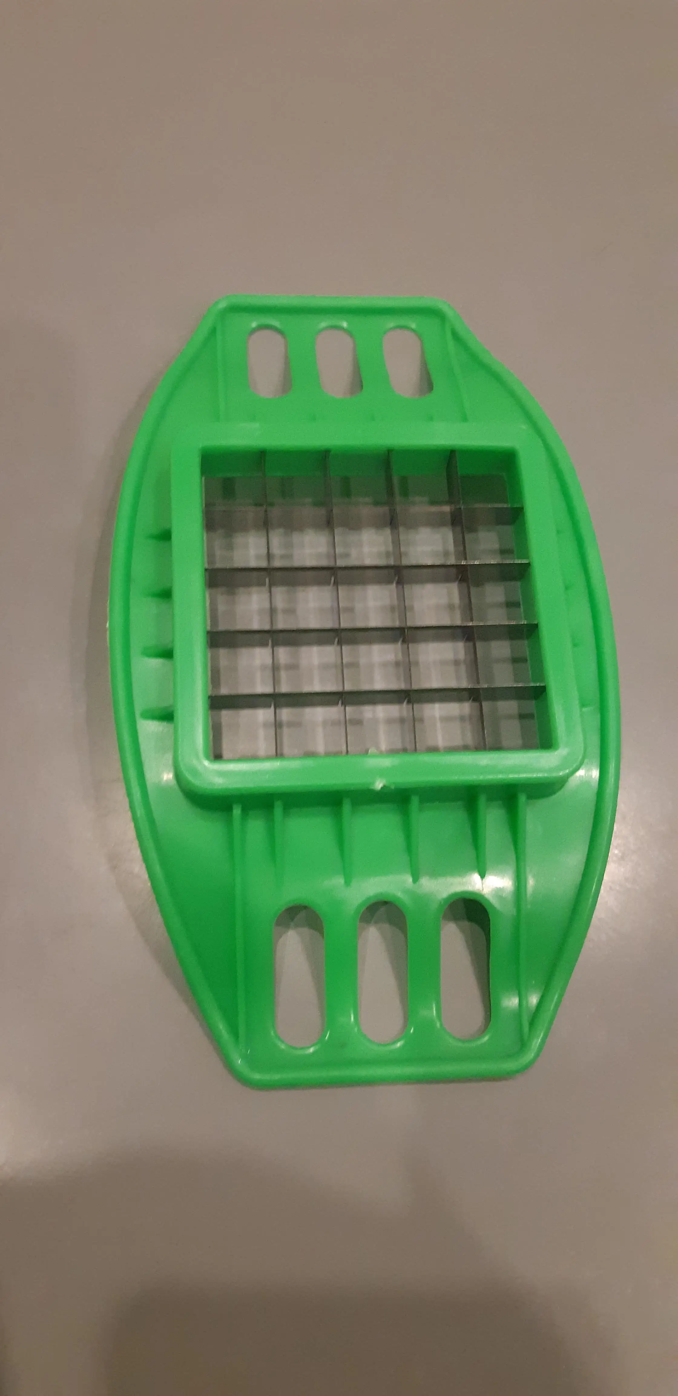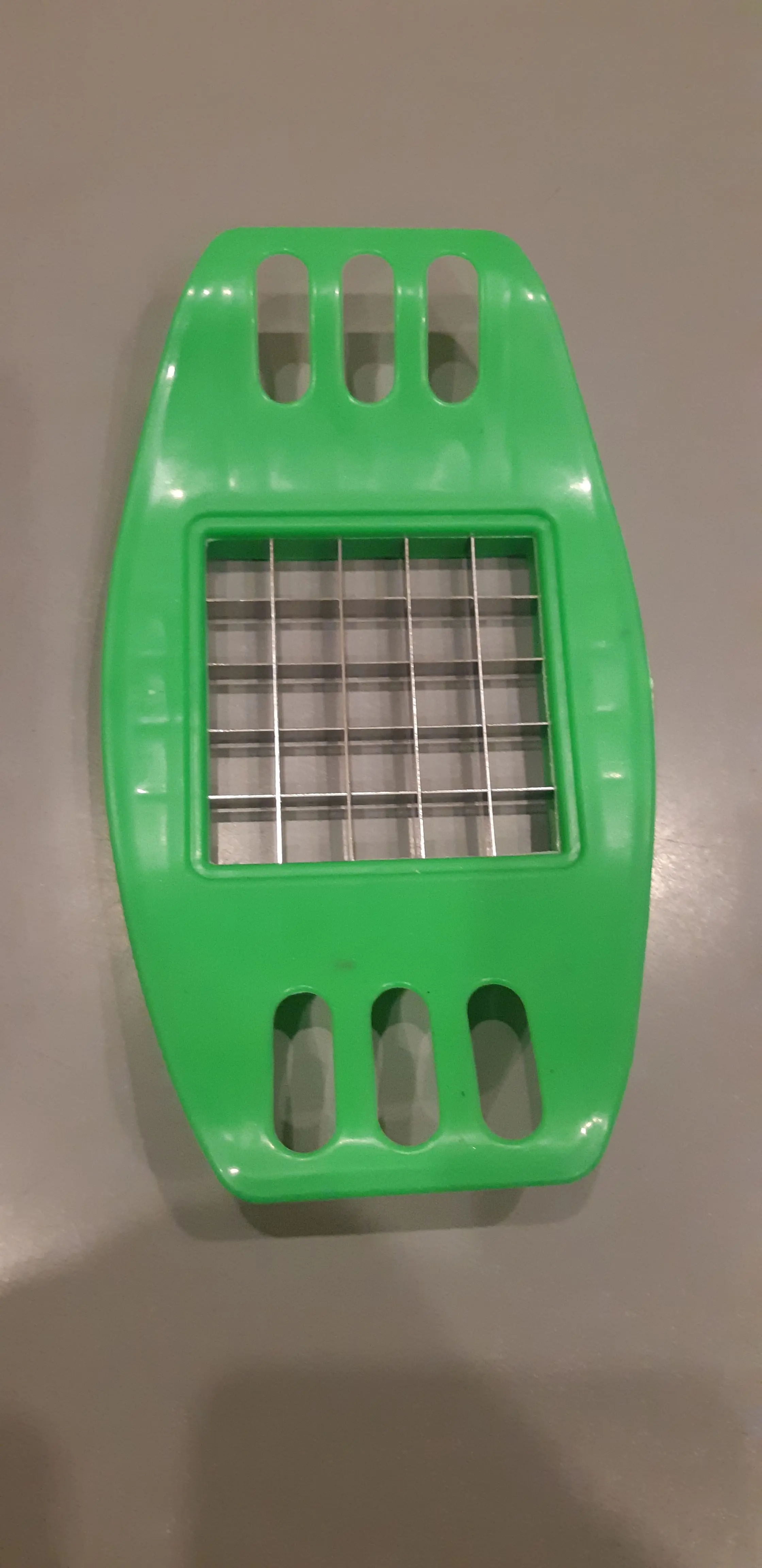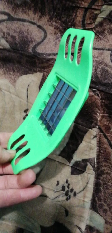 Отстой. Не покупайте товар. Решила испытать товар на яблоке. Порезала попалам, удалила ножку, и раз! Порезала яблоко на брусочки в длинною 1-3 см. С обратной стороны хрен прочистишь. Как только я "порезала" яблоко, эта штука развалилась. Слетела рамка, которая держала железки и они сами. Я их собрала, но теперь резать картофель брусочками как картофель фри - это только мечта. Хотя все точно как на картинке.