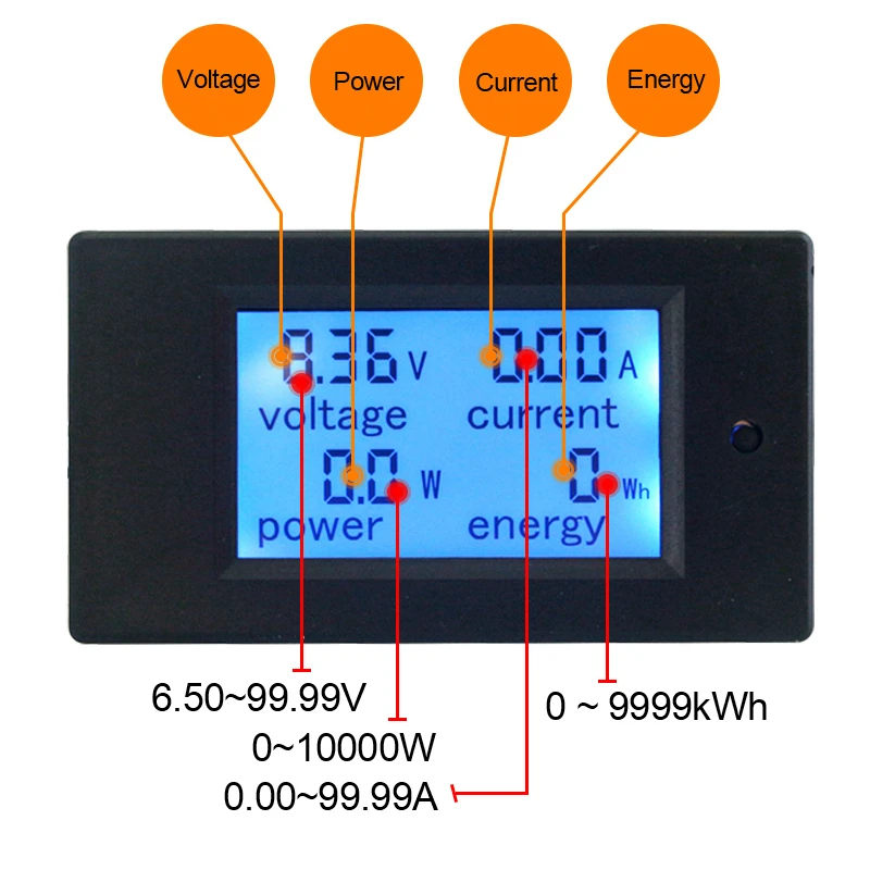 4 в 1 DC 6,5 100 в DC Амперметр Вольтметр цифровой вольтметр измеритель мощности Амперметр ЖК-дисплей Синяя подсветка 50A 100A опционально