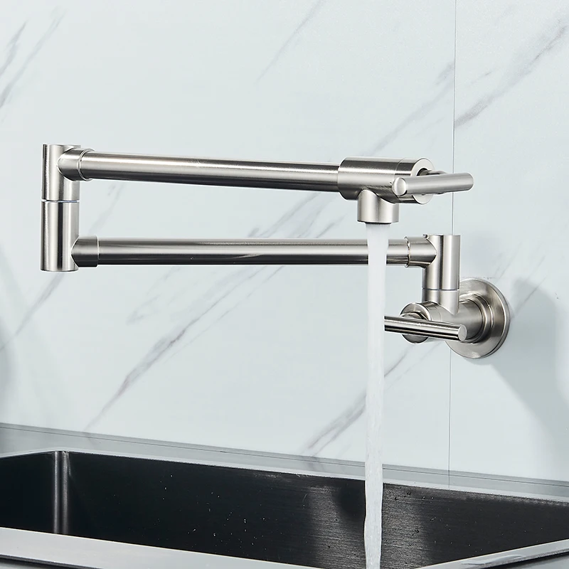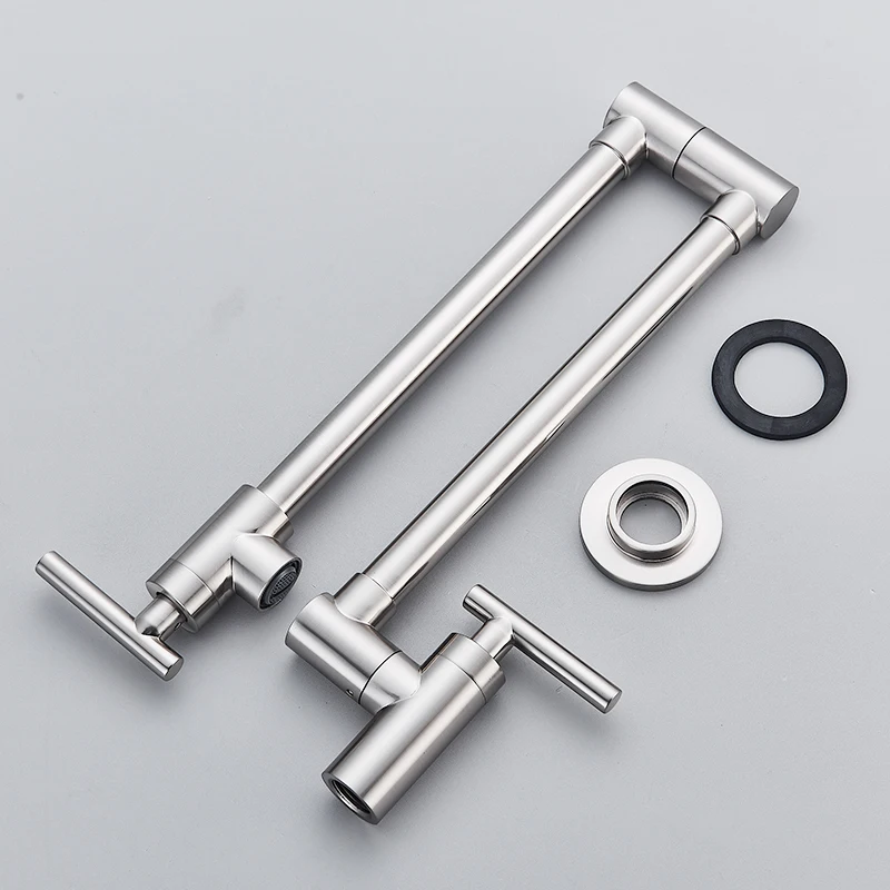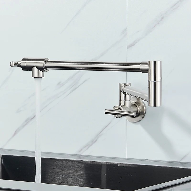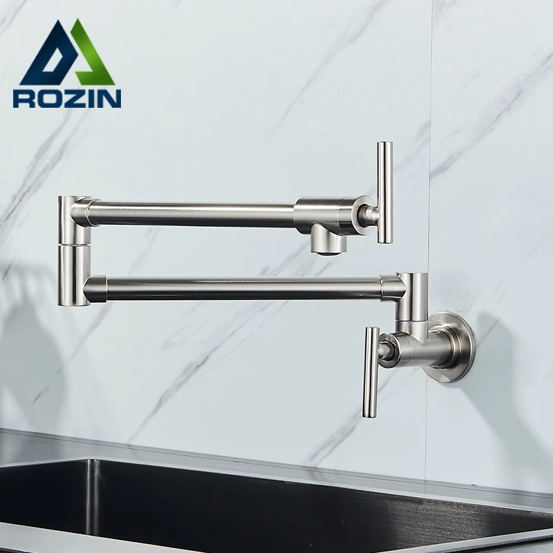 Наполнитель для кухни, складной растягивающийся настенный латунный смеситель с двойным соединением, одно отверстие, две ручки, смеситель для раковины