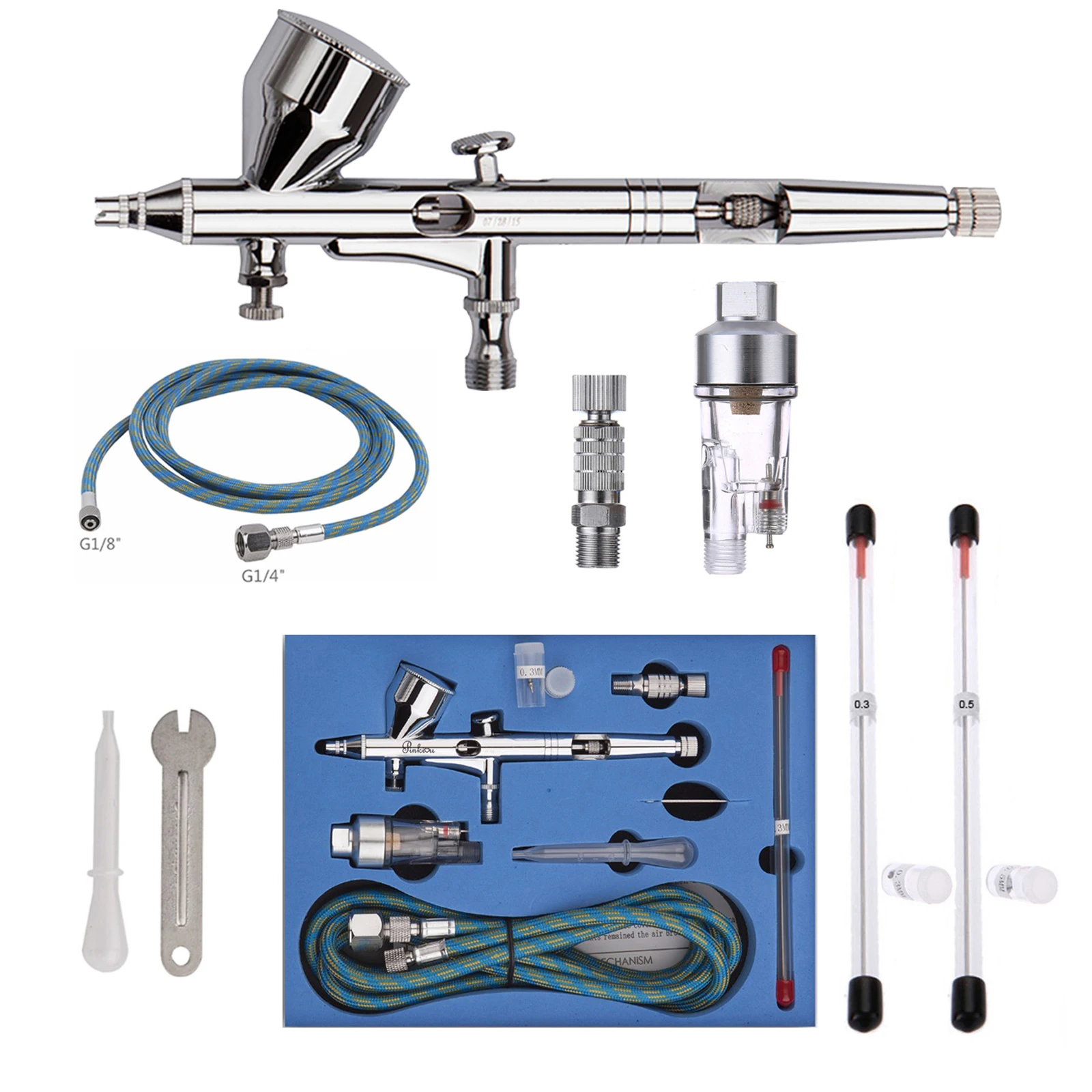 Шланг аэрографМатериал: нейлоновый плетеный шланг.Идеальный шланг для подключения аэрографа и компрессора.Сепаратор масляной воды1. Устраняет воду, масло, влагу, пыль и частицы в линии воздушного компрессора, обеспечивает сухой газ, эффективно продлевает срок службы воздушного инструмента.2. Отделите сжатую воду в воздухе, чтобы обеспечить лучший эффект распыления пистолета.Мелкие детали0,2 мм/0,3 мм/0,5 мм иглы соответствует вашей окружности головы больше.