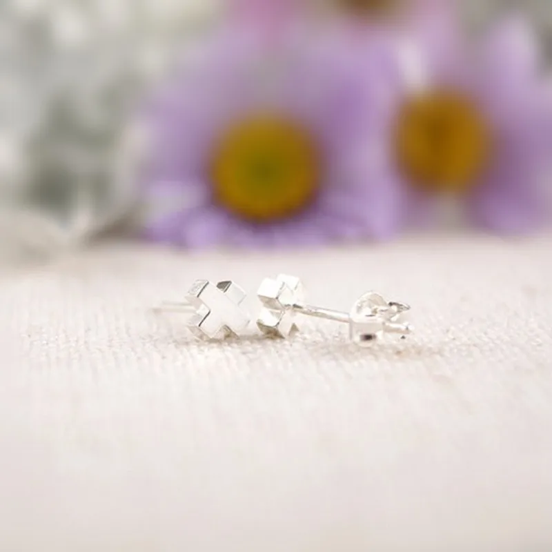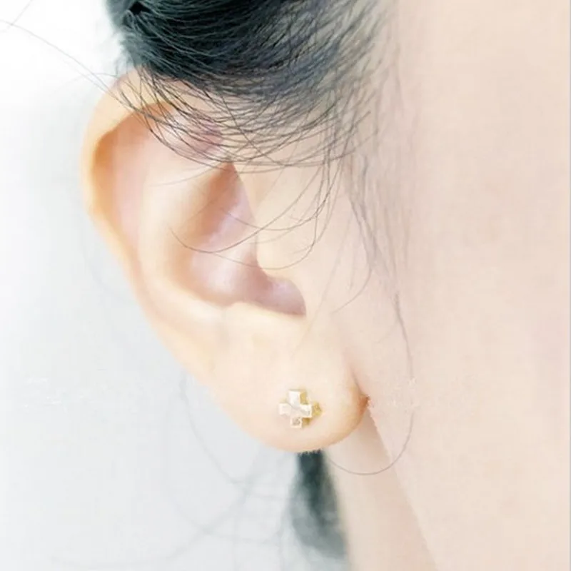 Модные маленькие серьги-гвоздики с крестом, золотистые, серебристые, розовые цвета на выбор