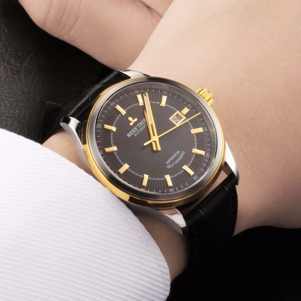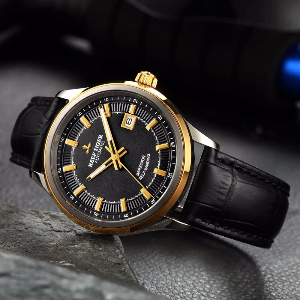 Мужские деловые часы Reef TigerRT, супер светящиеся часы Miyota 9015 со стальным желтым золотом и датой, RGA8015 icon star icon star icon star icon star icon star