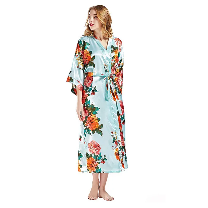 2022 розовая ночная рубашка с цветами, халат, атласная одежда для с...