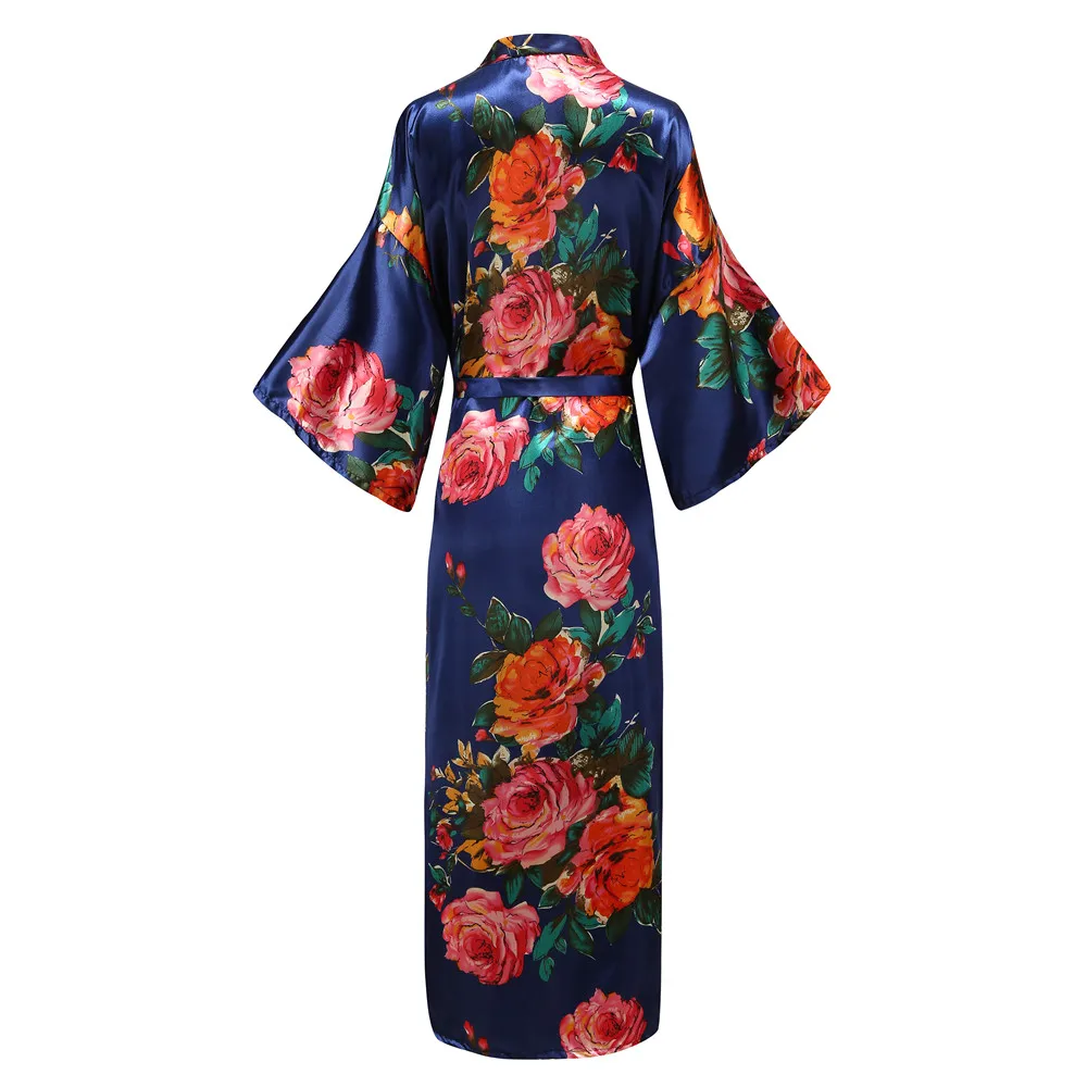 Халат-кимоно Женский с цветочным принтом, длинное пикантное нижнее белье оверсайз с длинным рукавом, с поясом, домашняя одежда, 3XL, 4XL