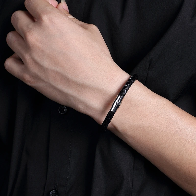 Модные мужские браслеты, плетеные кожаные браслеты из нержавеющей с...