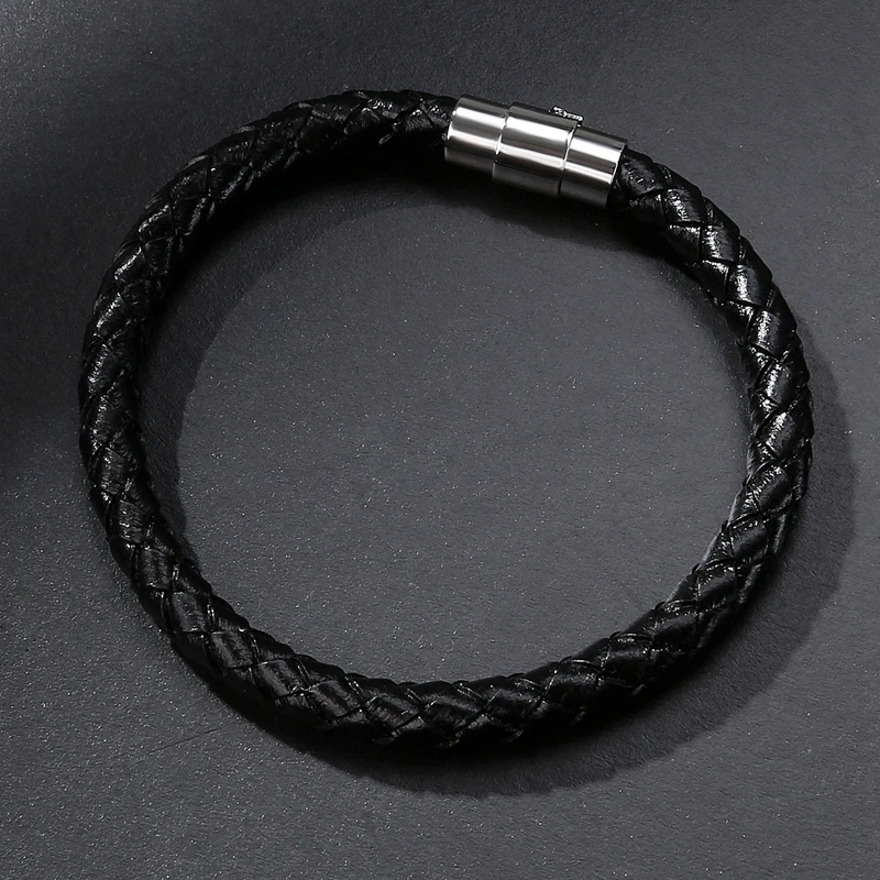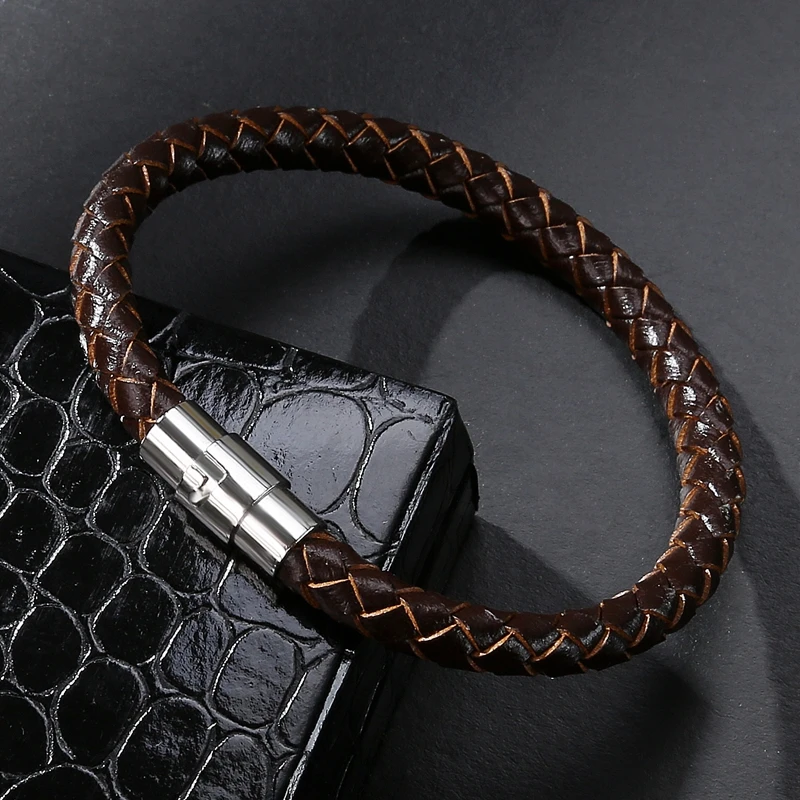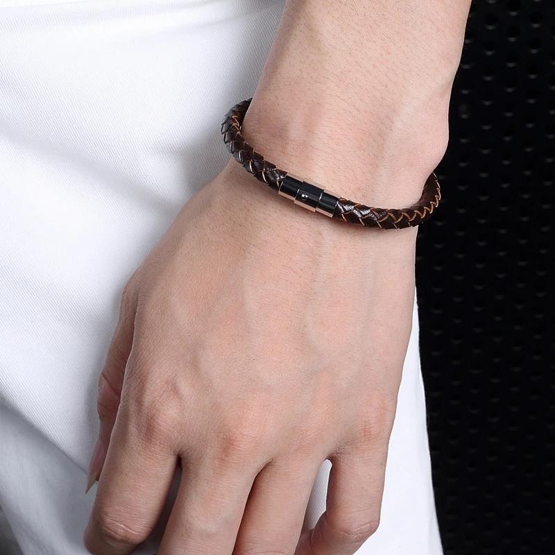 Браслет мужской кожаный плетеный, из нержавеющей стали, магнитный, ...