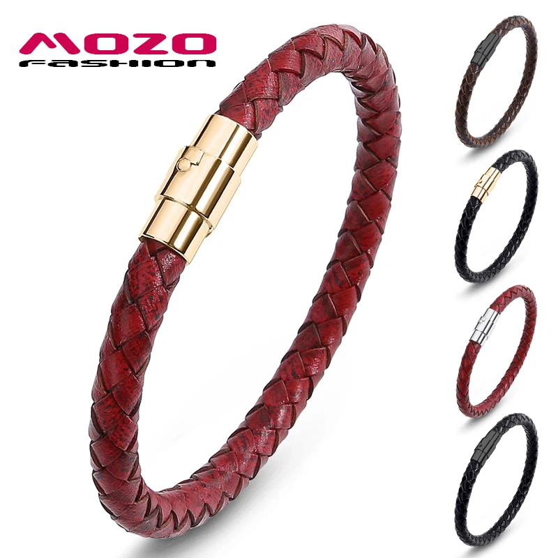 MOZO Модные мужские кожаные веревочные Цепочки Браслеты из нержавеющей стали магнитные застежки высокое качество женские подарки Винтажные Ювелирные изделия 626