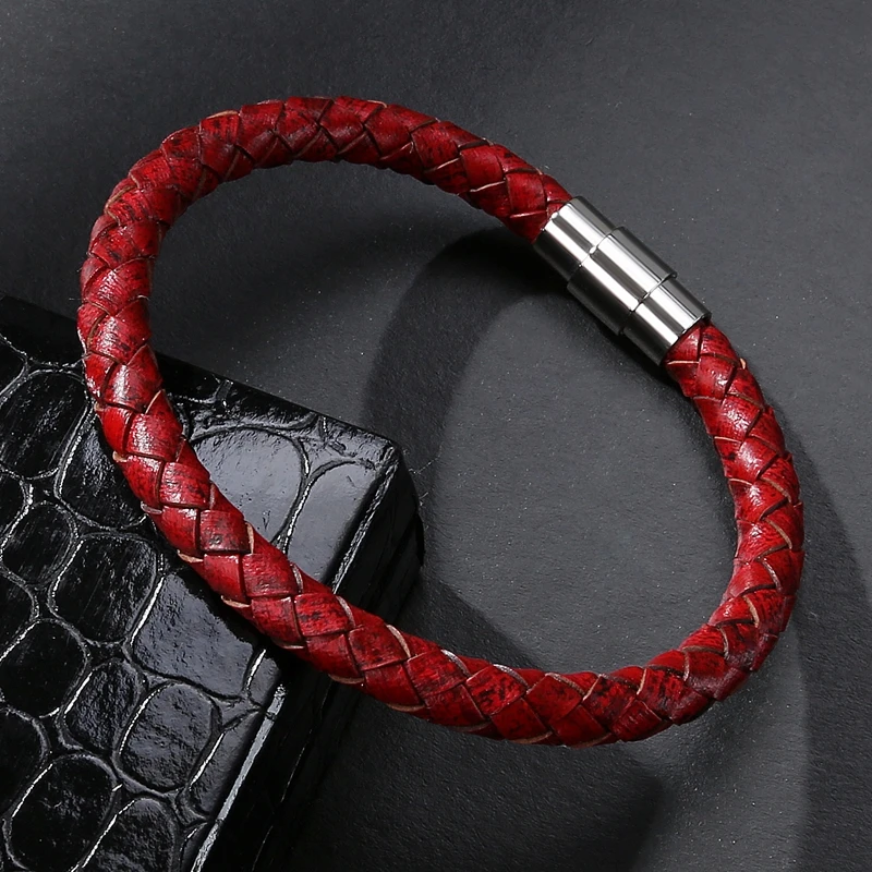 Плетеный кожаный браслет, черный, красный, мужской, панк, ювелирные...