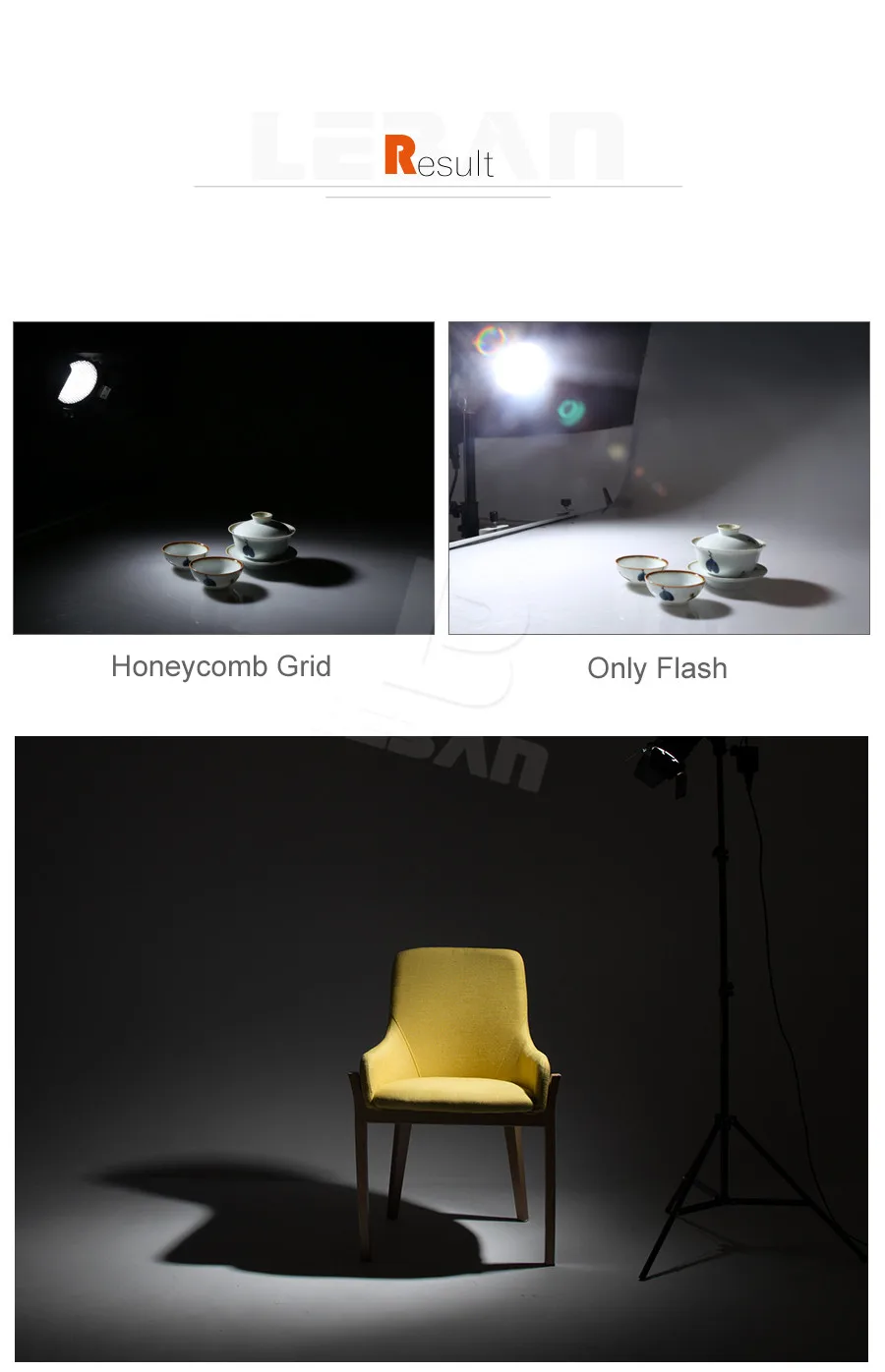 1 сотовая структура позволяет контролировать направление вашего светильник. Сотовая сетка превратит стробоскопическую головку в специальный светильник. Он точно излучает светильник, куда вы направляете. Фотографы, которые используют их, как правило, используют много, «Живопись сцены» точно с бассейнами светильник