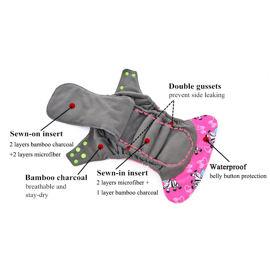 Супер быстрая доставка Все-в-одном пеленки с вкладышем прилагаются Больший размер